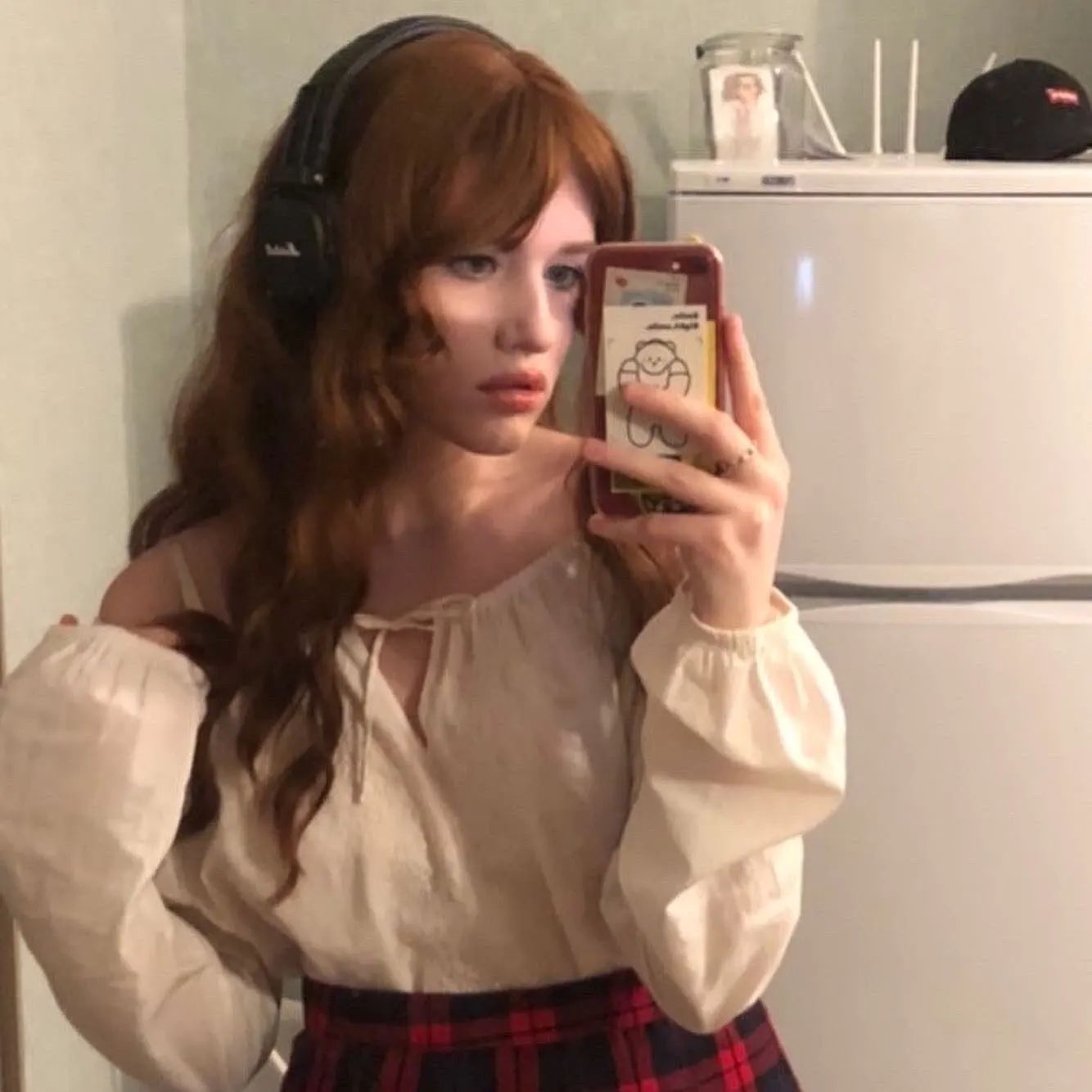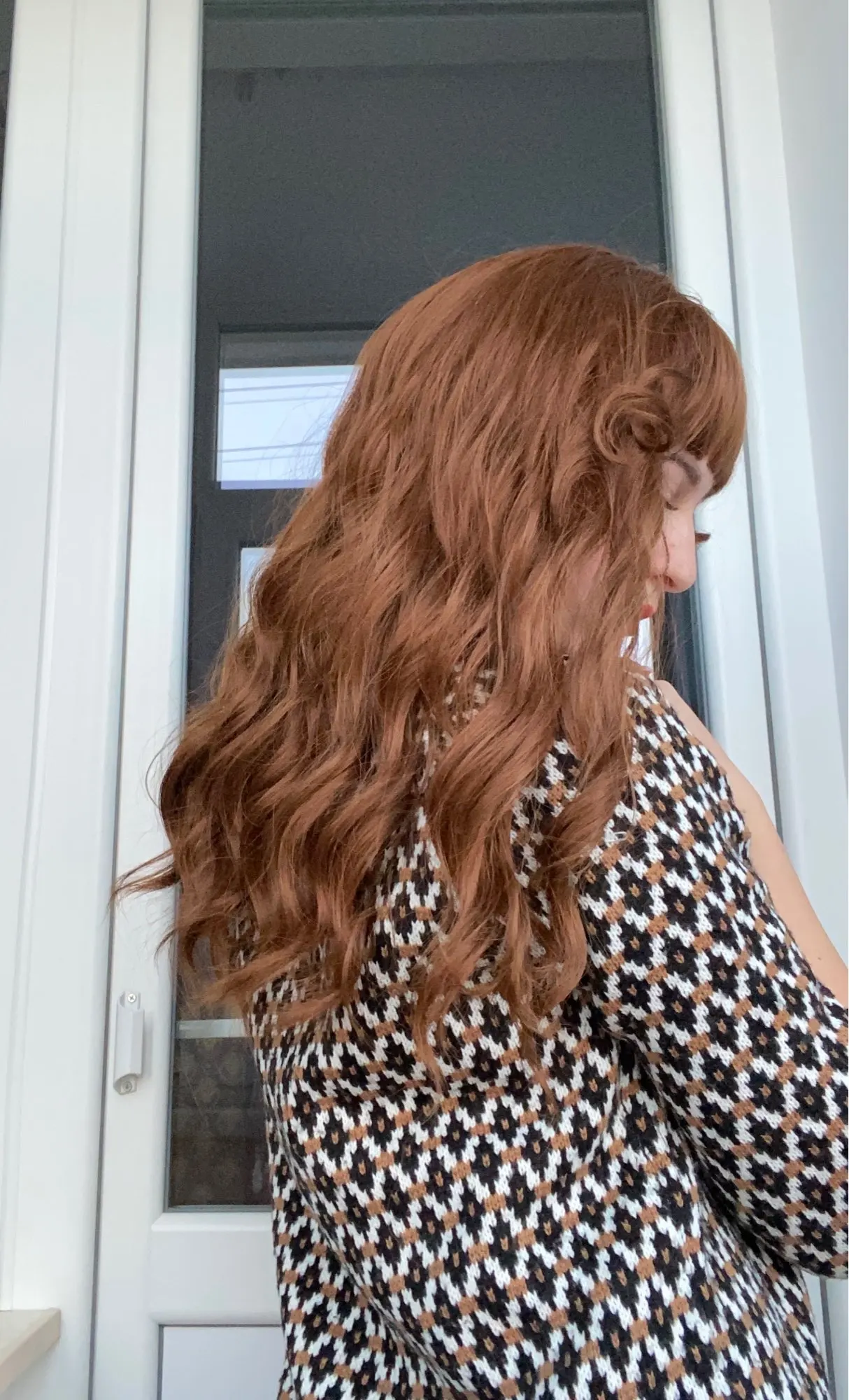 Парик реально как натуральный. Больше коричневый, но отдаёт рыжим.