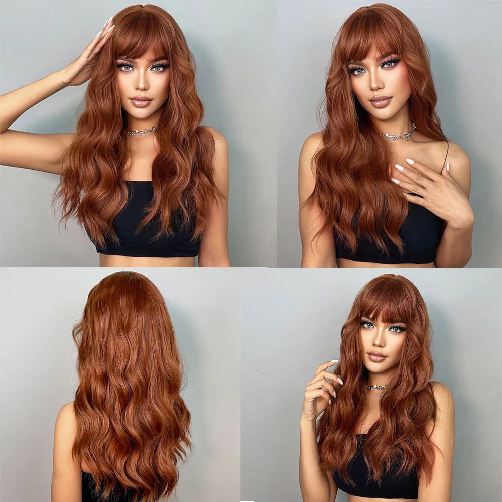 Парик с длинными волнистыми волосами для косплевечерние, с челкой