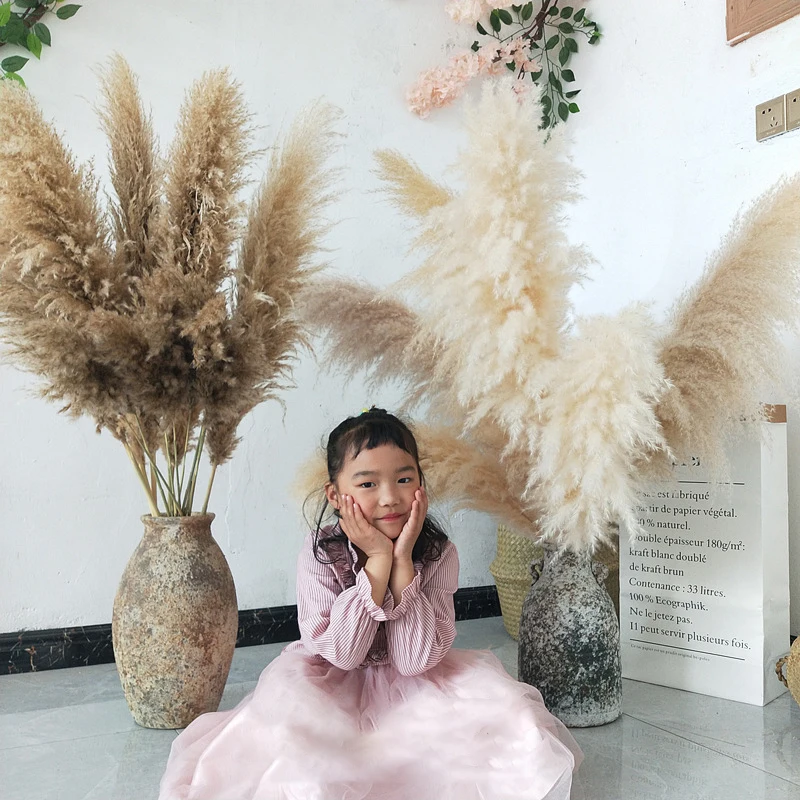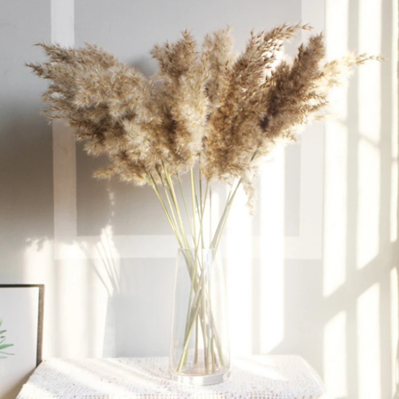 10 шт., сушеные растения, Pampas, трава, натуральный цвет, свадебные, булраш, цветы, букет, вечерние, домашний декор, искусственные цветы