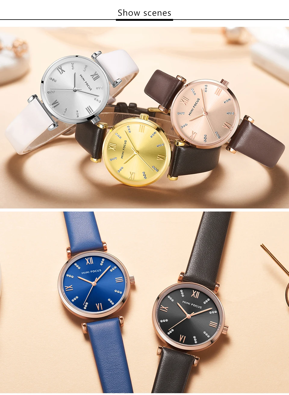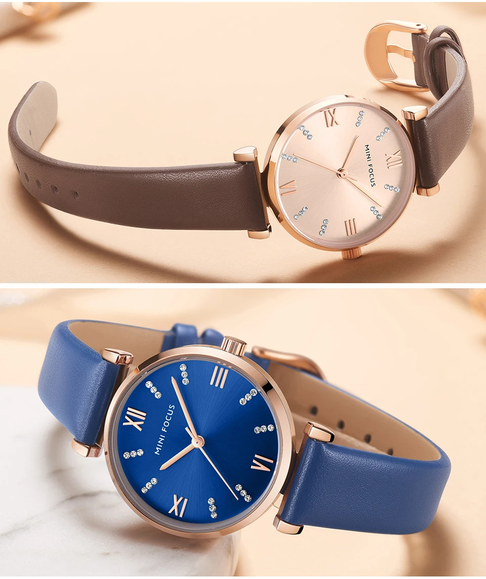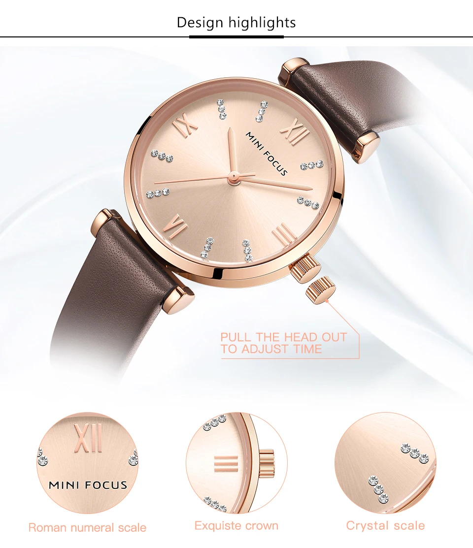 Часы MINIFOCUS женские с кожаным ремешком, брендовые Роскошные модные повседневные водонепроницаемые с коричневым кожаным ремешком, 30 м