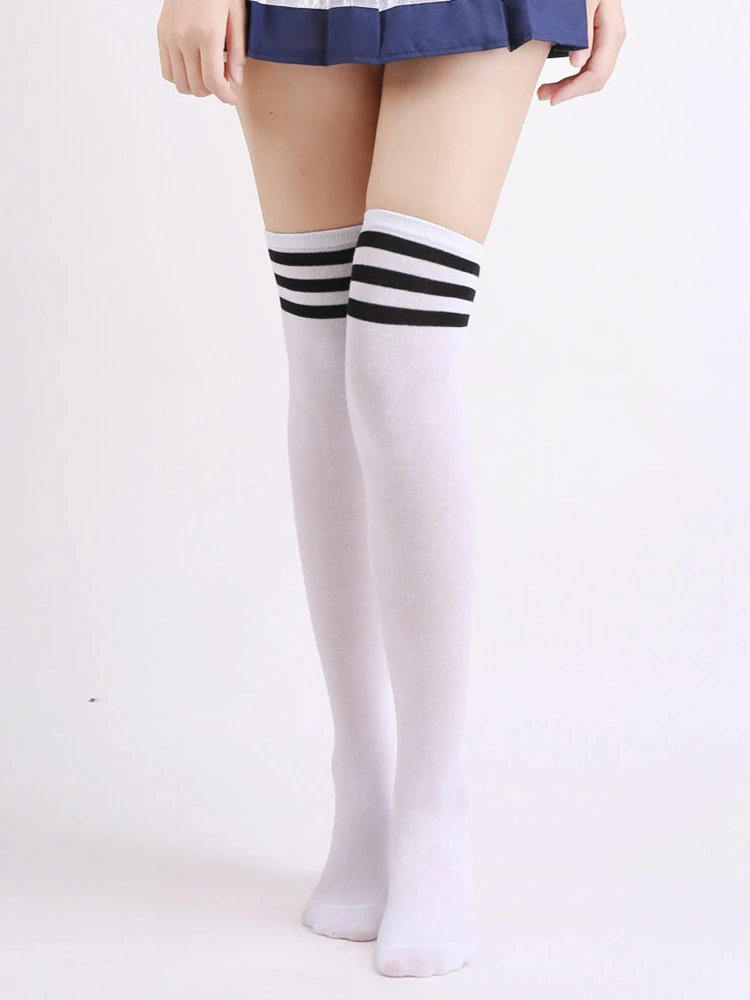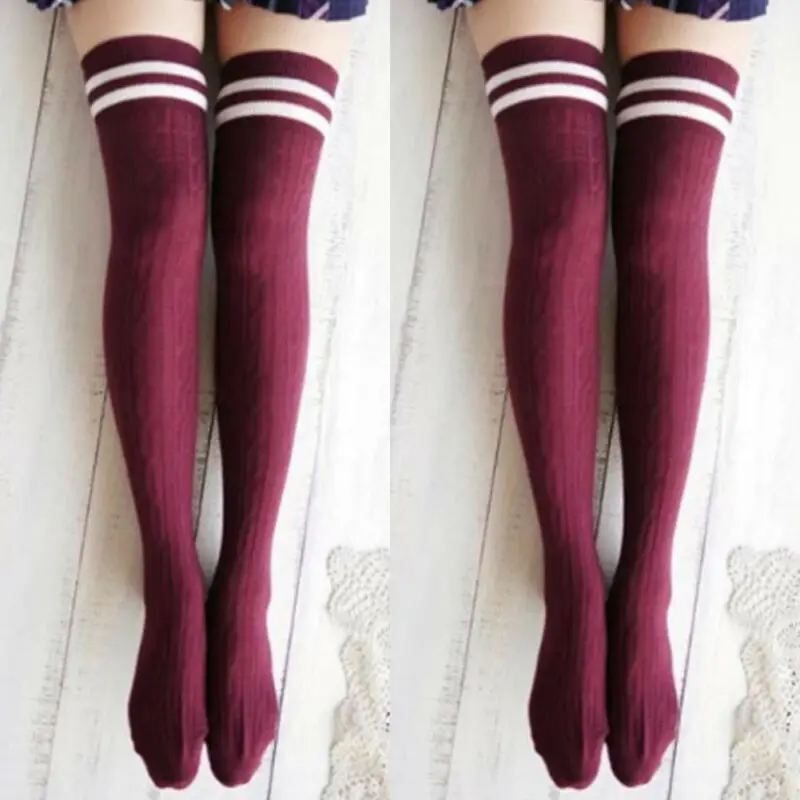 Женские гольфы выше колена, гольфы в полоску для студентов, 2019