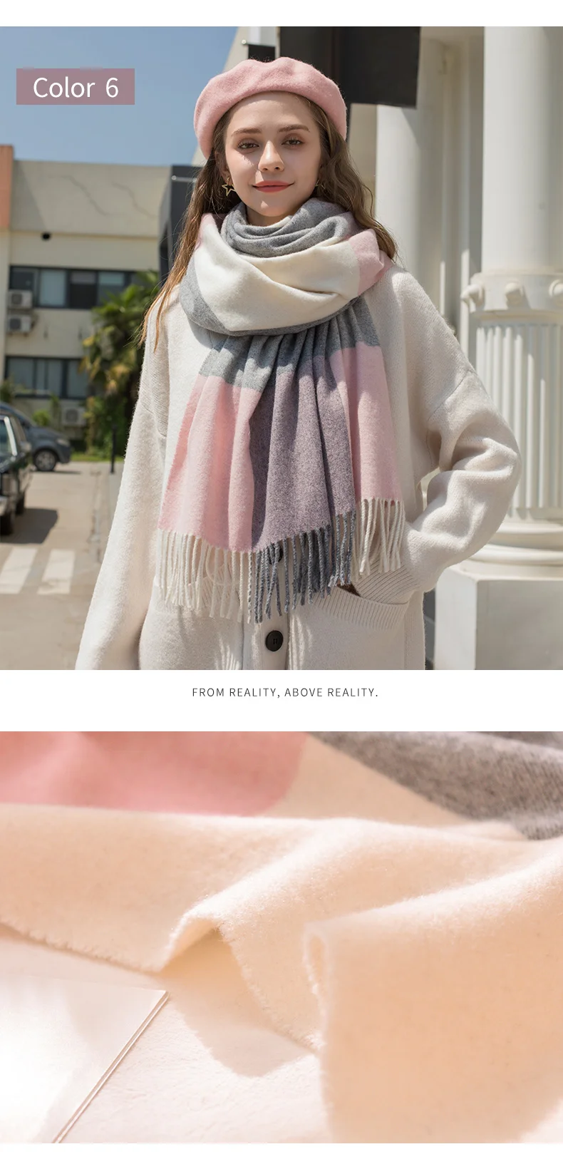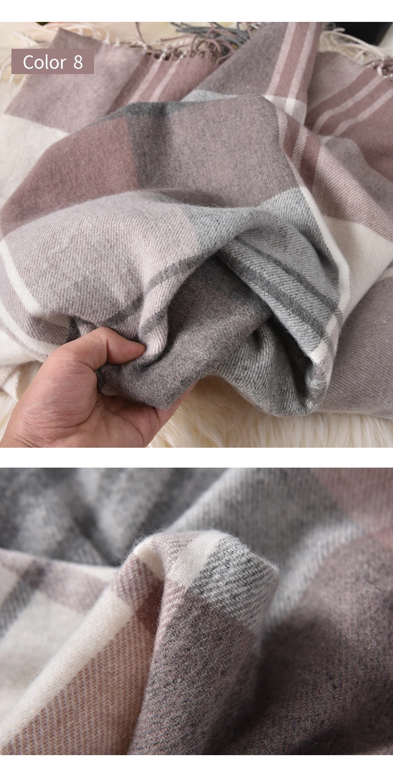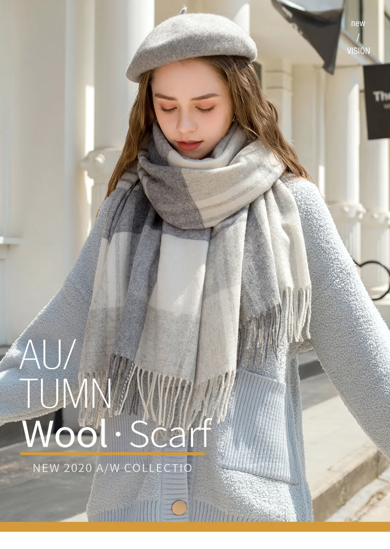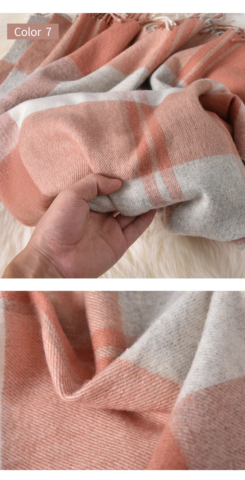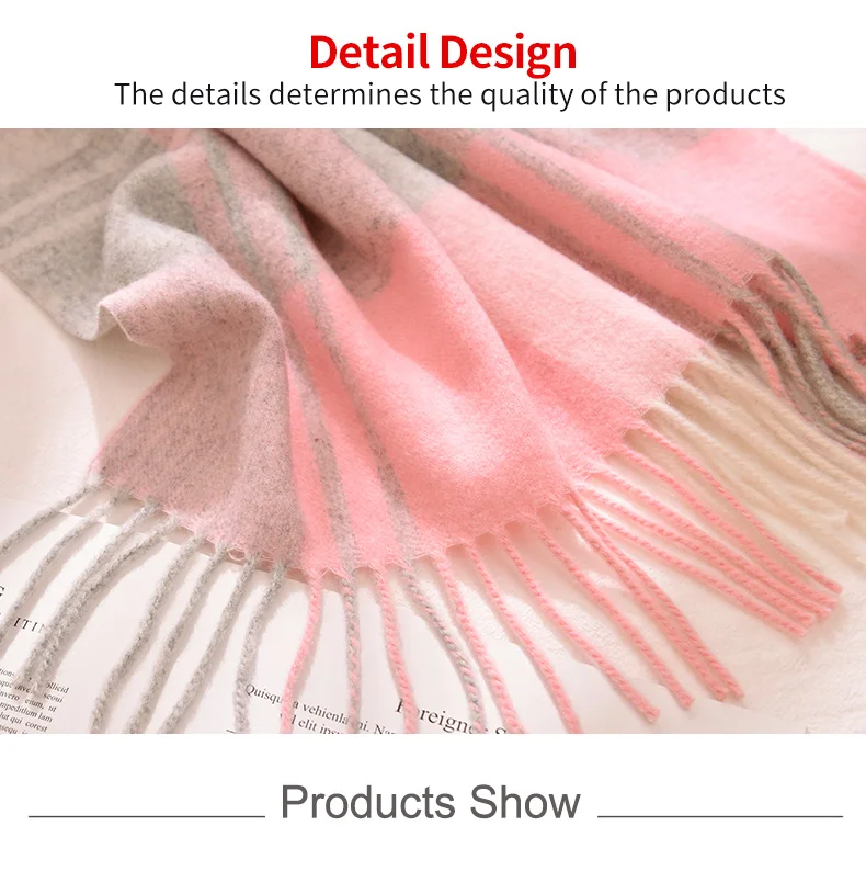 Зимний шерстяной шарф в клетку для женщин, плотный теплый шарф, розовый шарф из пашмины