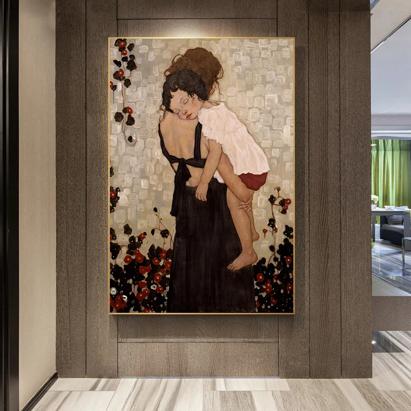 Матери, которая держит ребенка Густава Климта холст Плакаты абстрактные Картины декоративное настенное Искусство Рисунок Cuadros для Декор в гостиную без рамы