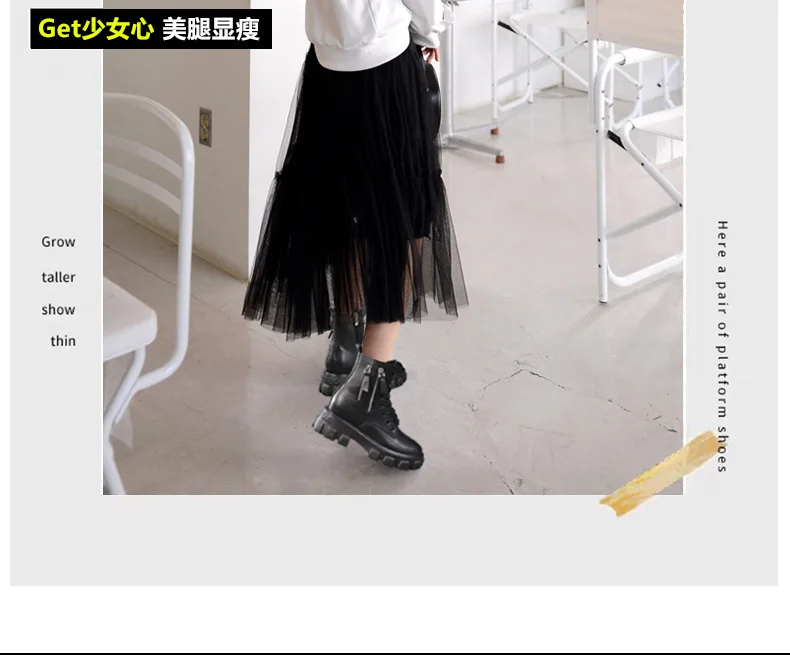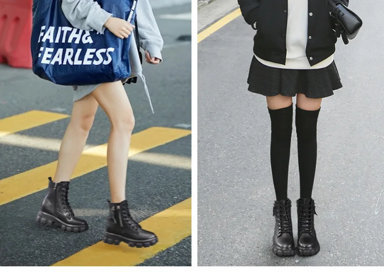 Женские мотоциклетные ботинки на платформе, черные, со шнуровкой, на массивном каблуке, со шнуровкой, с пряжкой