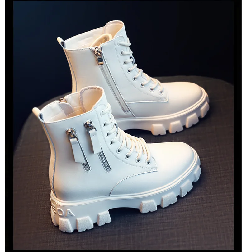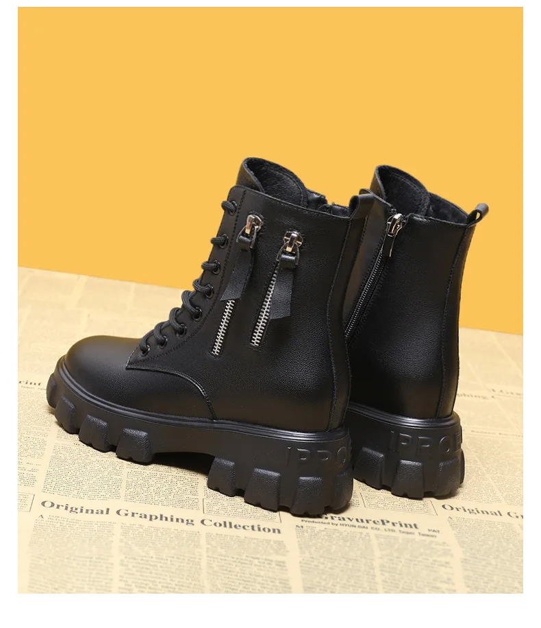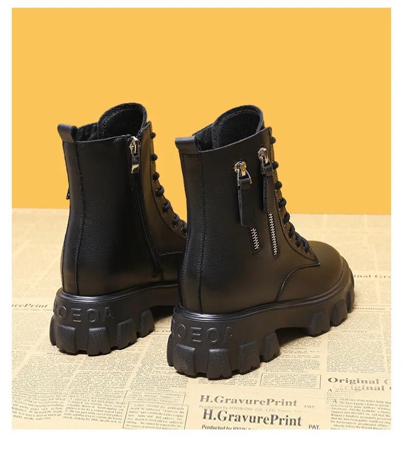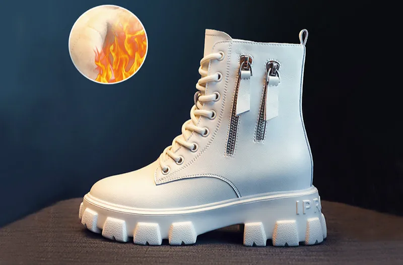 Женские ботильоны на платформе, теплые мотоциклетные ботинки на шну...