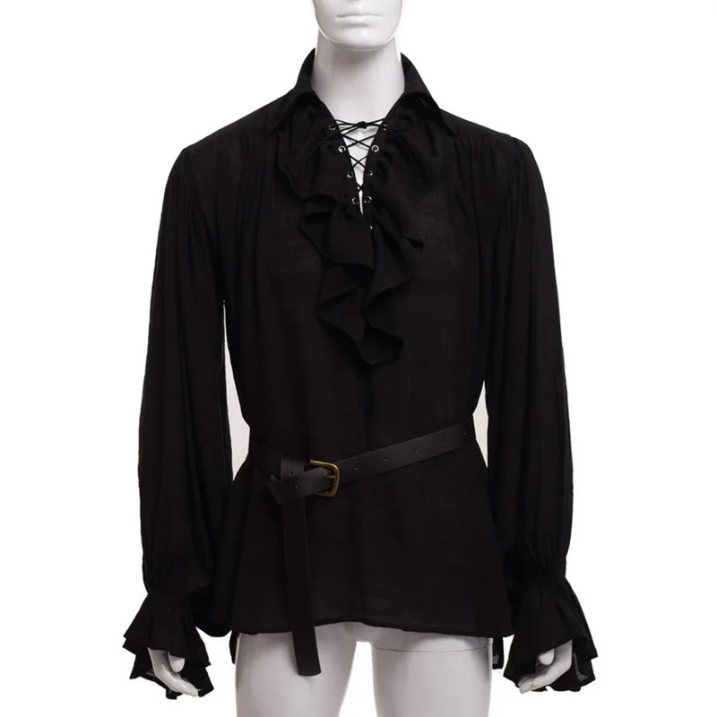Мужские готические рубашки с оборками, топы для косплея в стиле стимпанк, викторианский пират