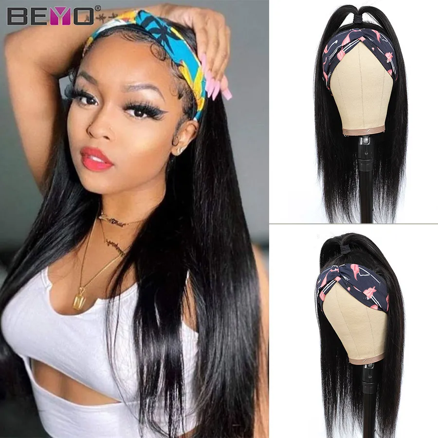 Прямой парик с головной повязкой Glueless человеческие волосы для черных женщин Beyo Remy волосы парики полная машина сделал парик 150% Плотность