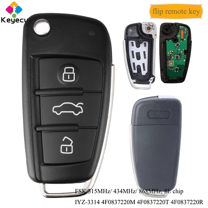KEYECU флип-пульт дистанционного управления автомобильный ключ с 3 кнопками 8E чип 315 МГц/434 МГц/868 МГц FSK - FOB для A6 A6L S6 Q7 2006 2007-2012