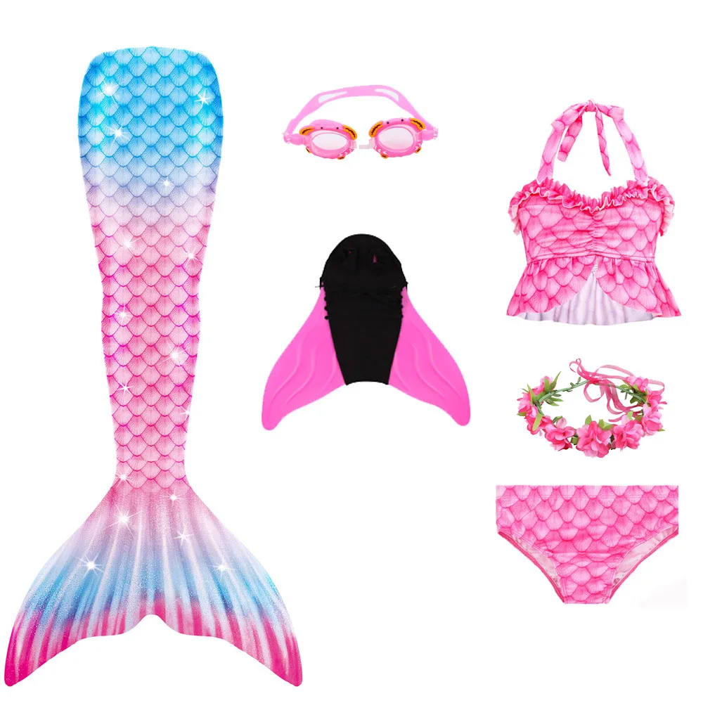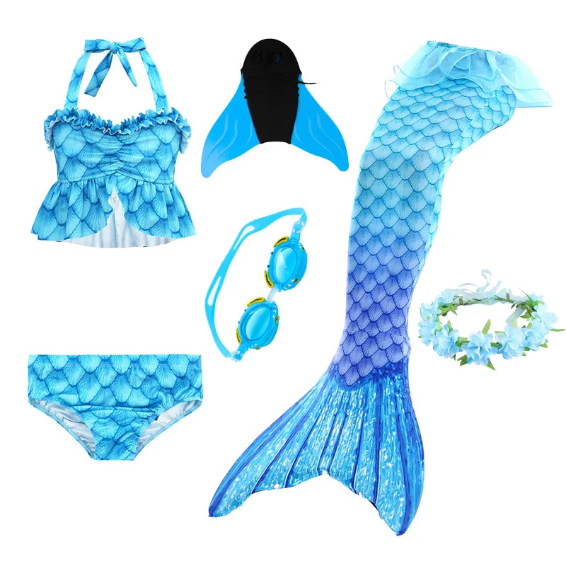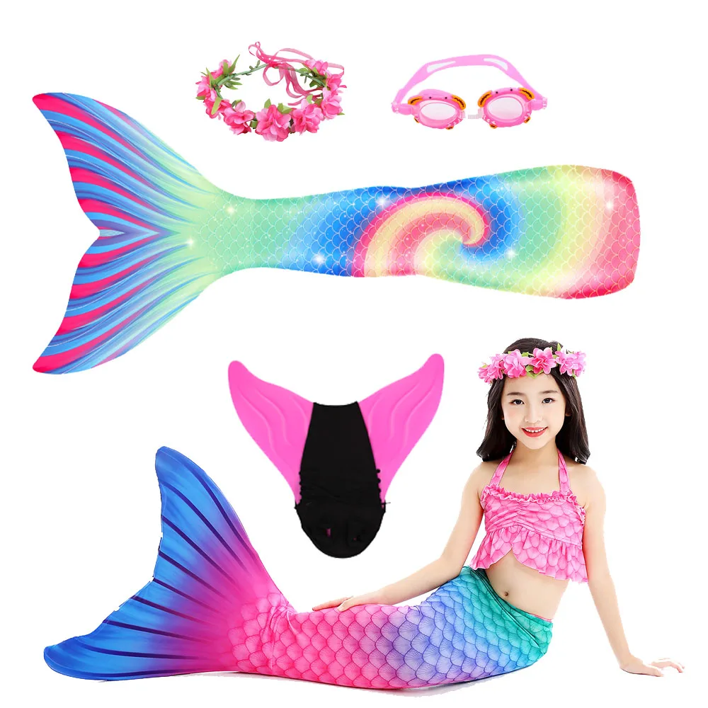 Детский купальный костюм русалка, с очками, с хвостом, для девочек, для косплея, Хэллоуина, Моноласты, хвосты для купания