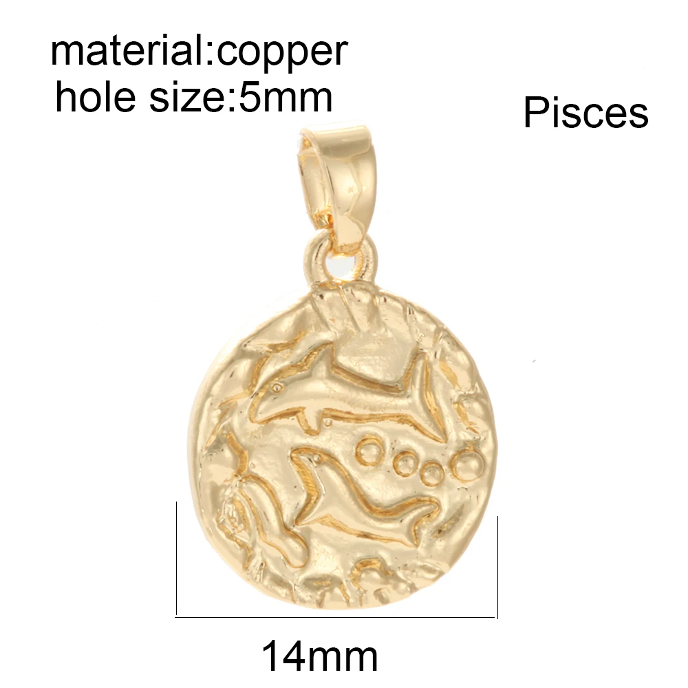 Подвески 12 созвездий для изготовления ювелирных изделий россыпью золотые серьги сделай сам ожерелье на удачу 12 знаков зодиака металлические Медные CZ 5 мм отверстие