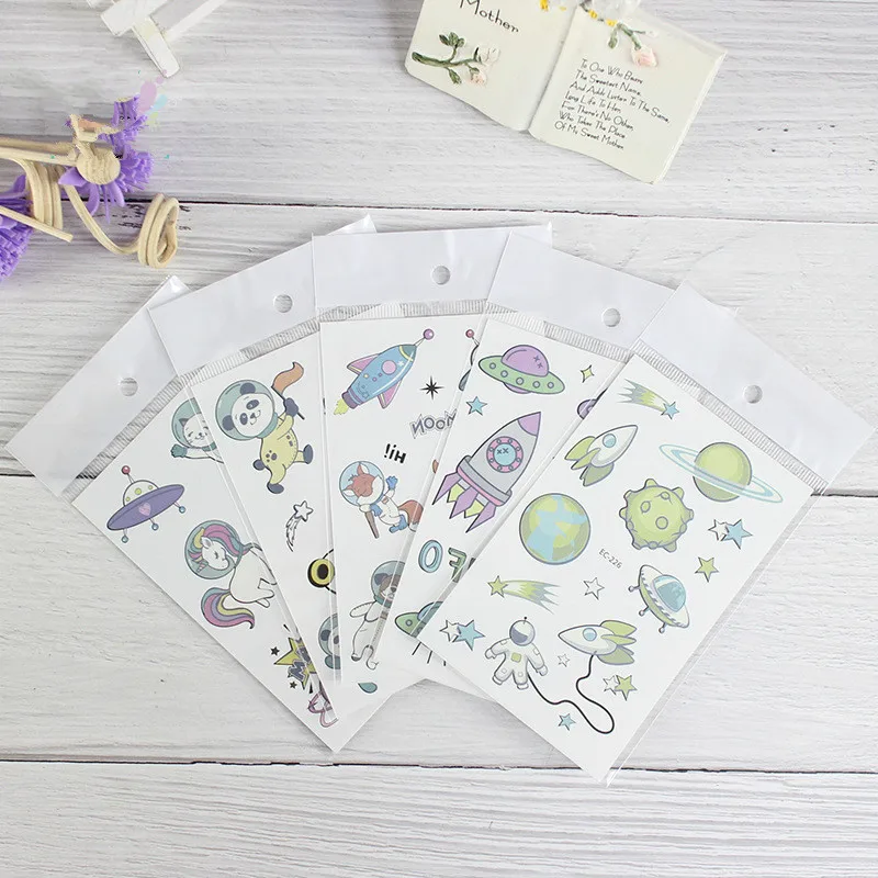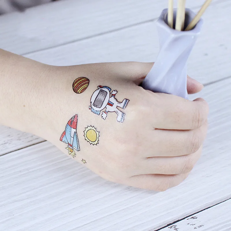 Временные тату-Стикеры серии Cosmic Space для детей, поддельные тату-Стикеры для лица, татуировки для рук, для мальчиков и девочек, для малышей