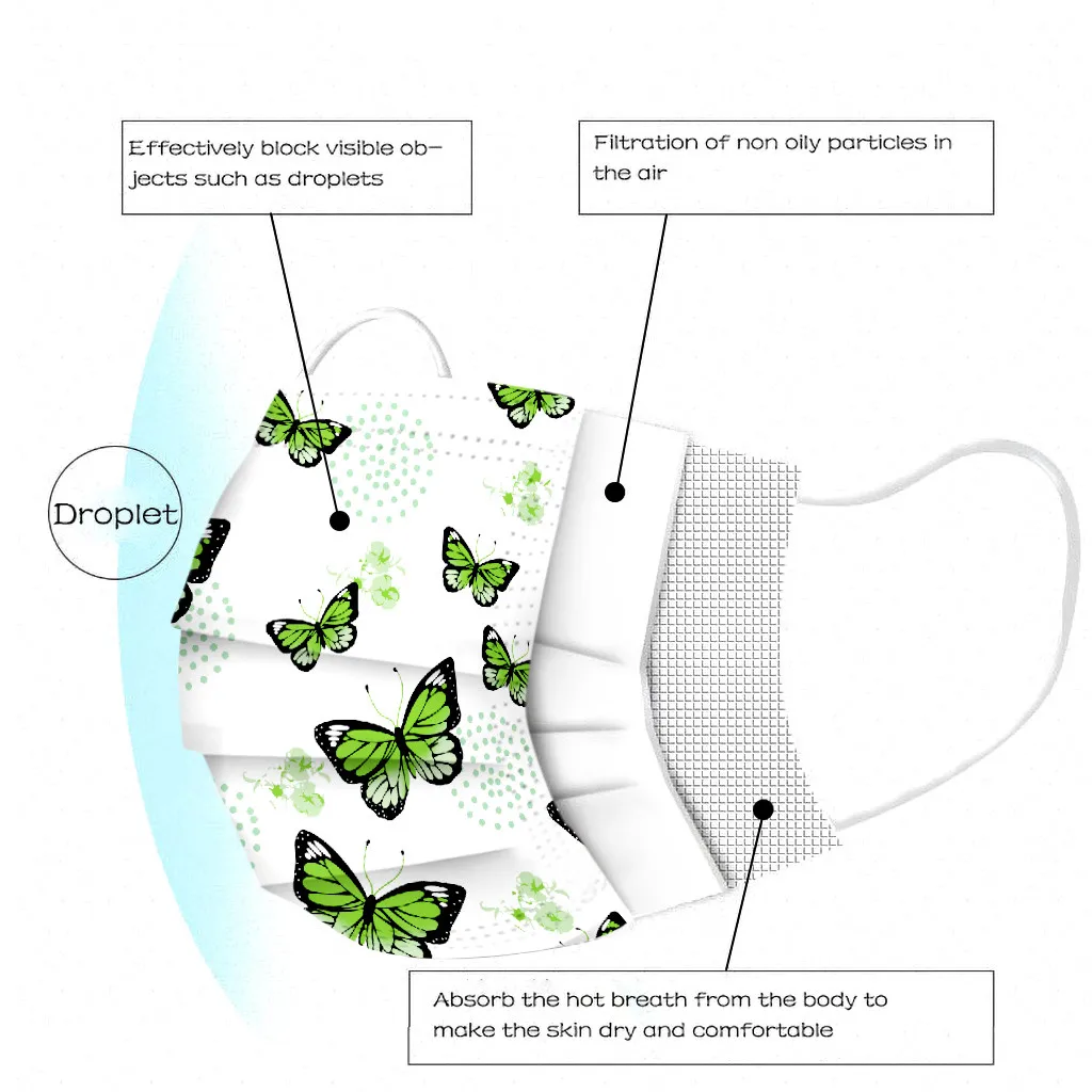 Дышащая Маска для лица, 50 шт., одноразовая маска-бабочка