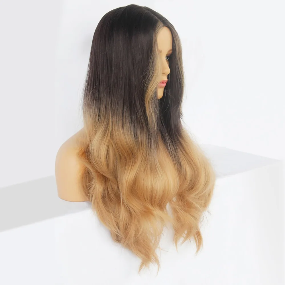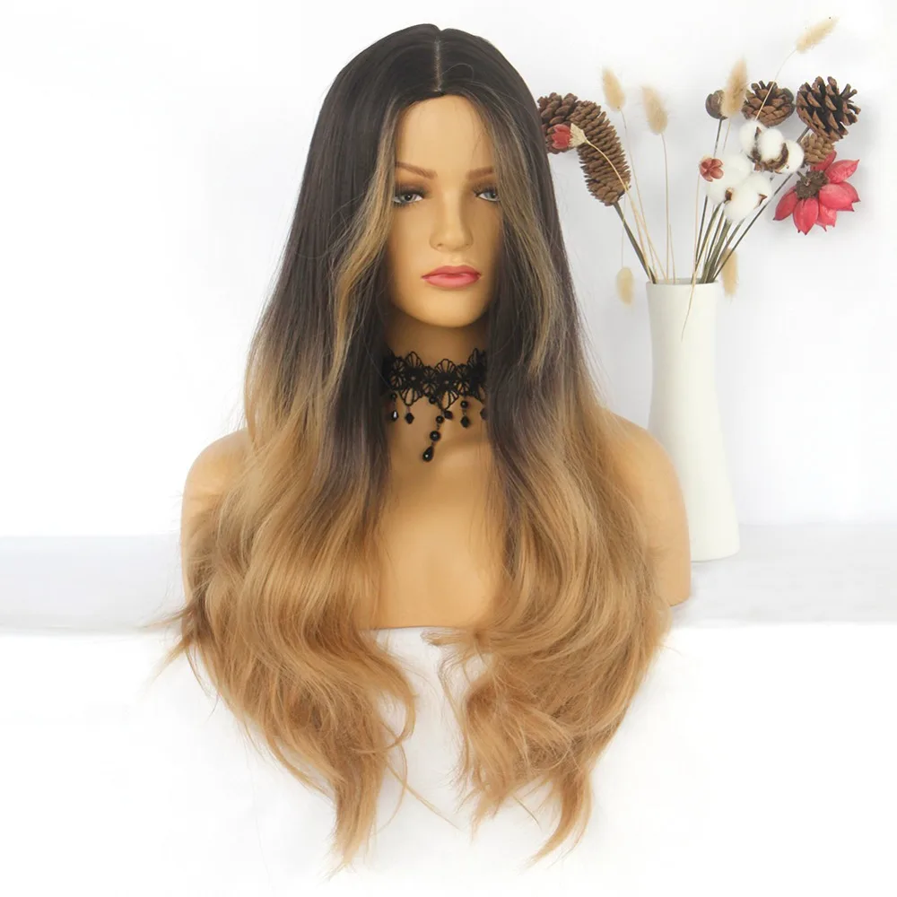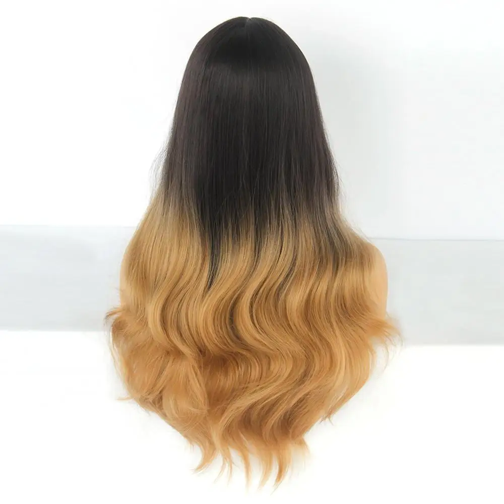 Бренд Anogol, длинный черный, коричневый, медовый волнистый парик, с бликами, косплей, синтетические парики для женщин, термостойкие, средняя часть, парики