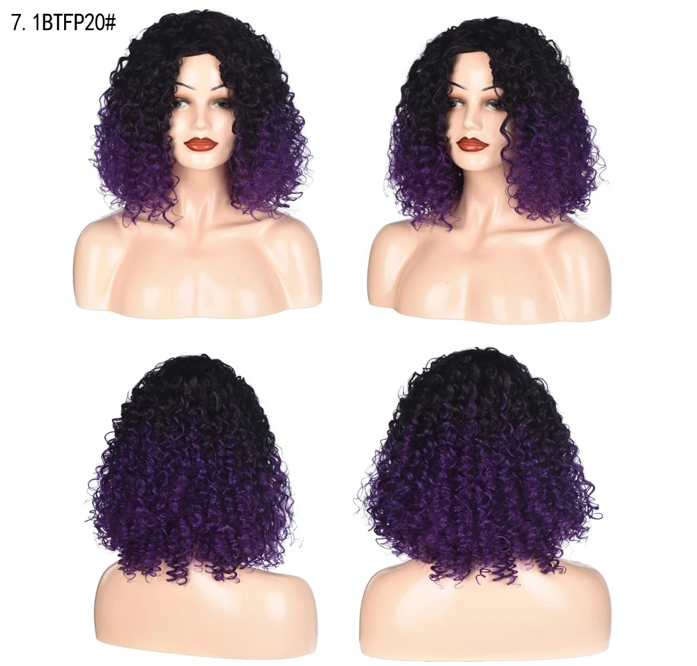 Короткие синтетические парики афро кудрявый парик для женщин Omber фиолетовый черный натуральный афро высокая температура волос