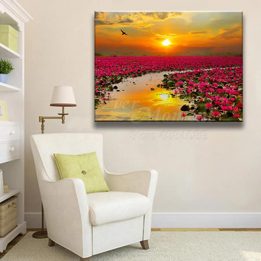Алмазная живопись Ever Moment, квадратная картина Лотос для рукодел...
