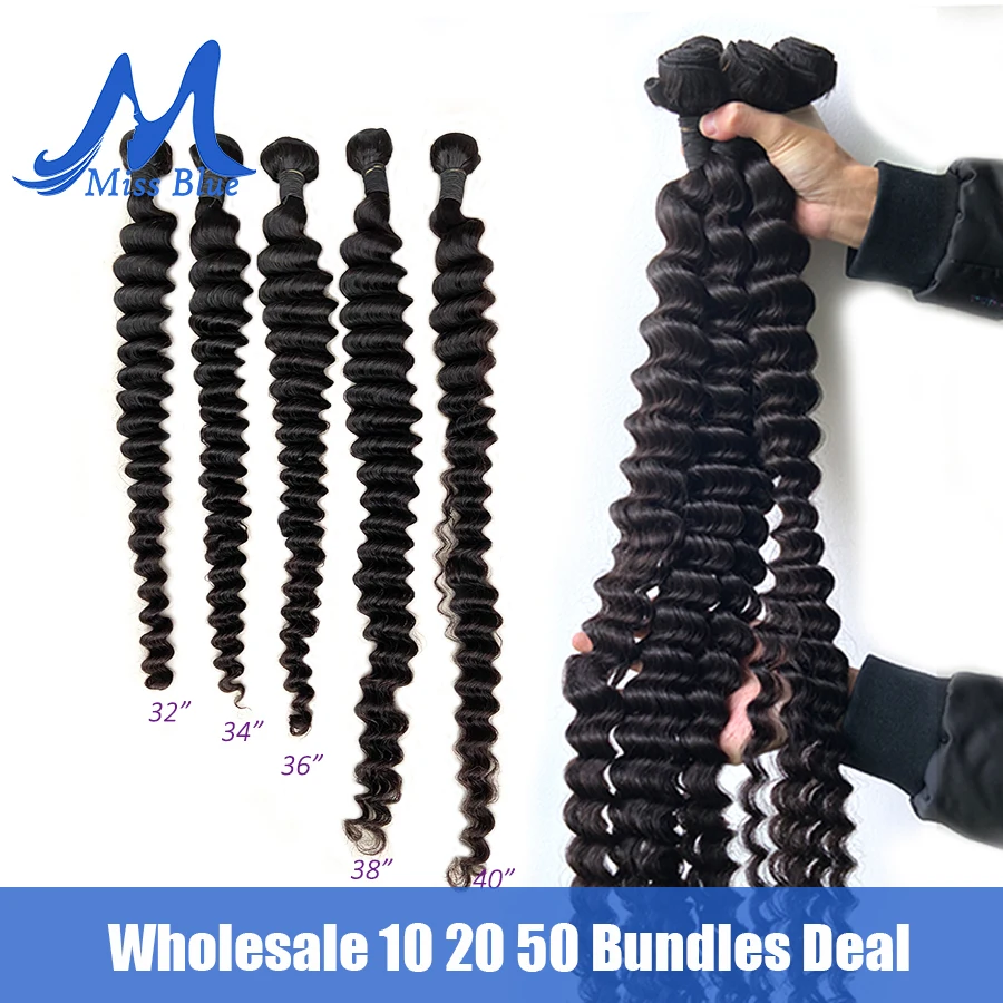 Опт бразильские пряди наращивание волос пряди волос глубокая волна 10 20 50 пряди 100% вьющиеся человеческих волос 30 32 38 дюймов Remy пряди человеческих волос для наращивания