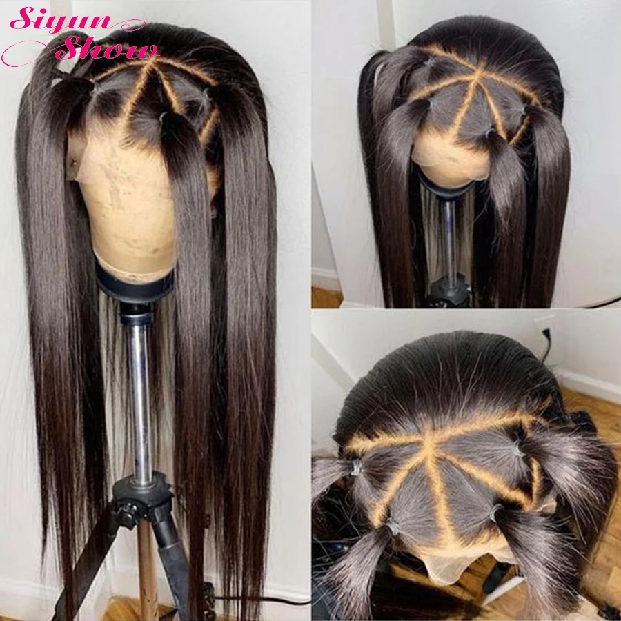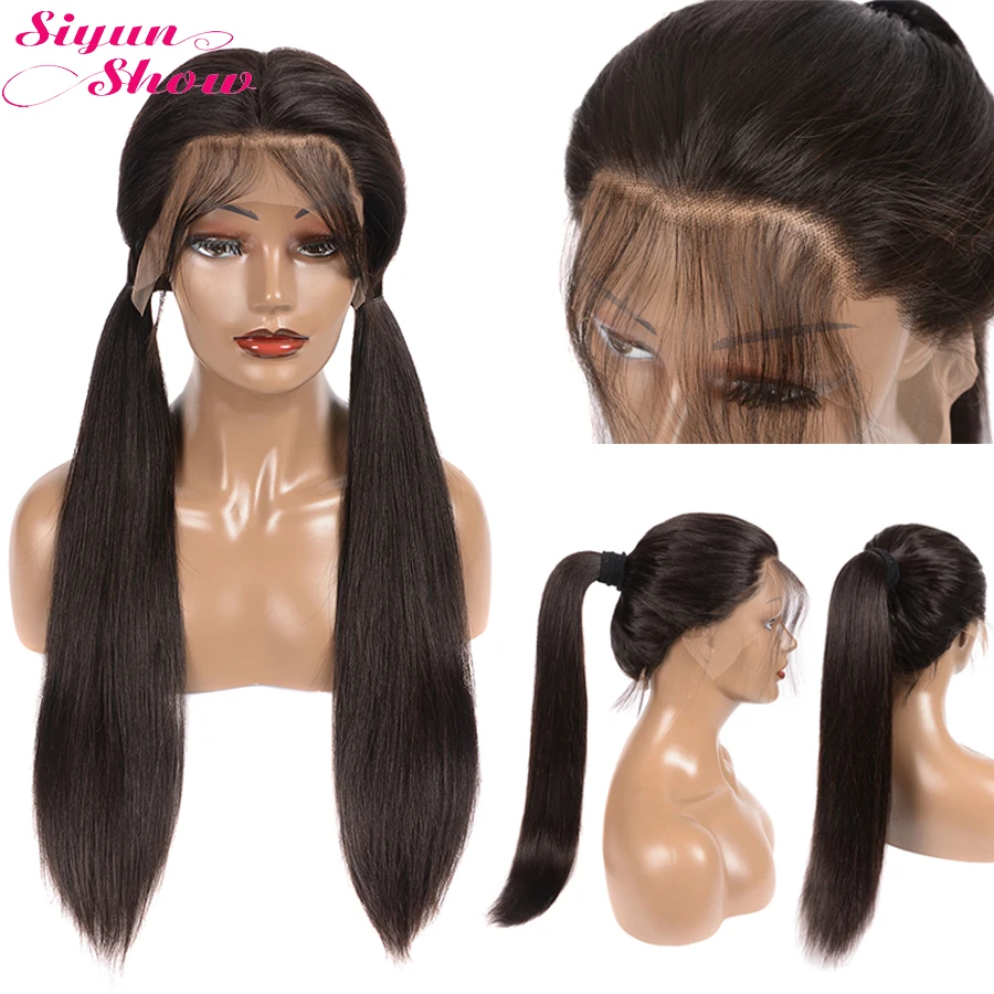 Siyun шоу бразильские прямые человеческие волосы парики 360 кружева фронтальный парик prepucked с волосами младенца 360 Полный парик шнурка для черных женщин