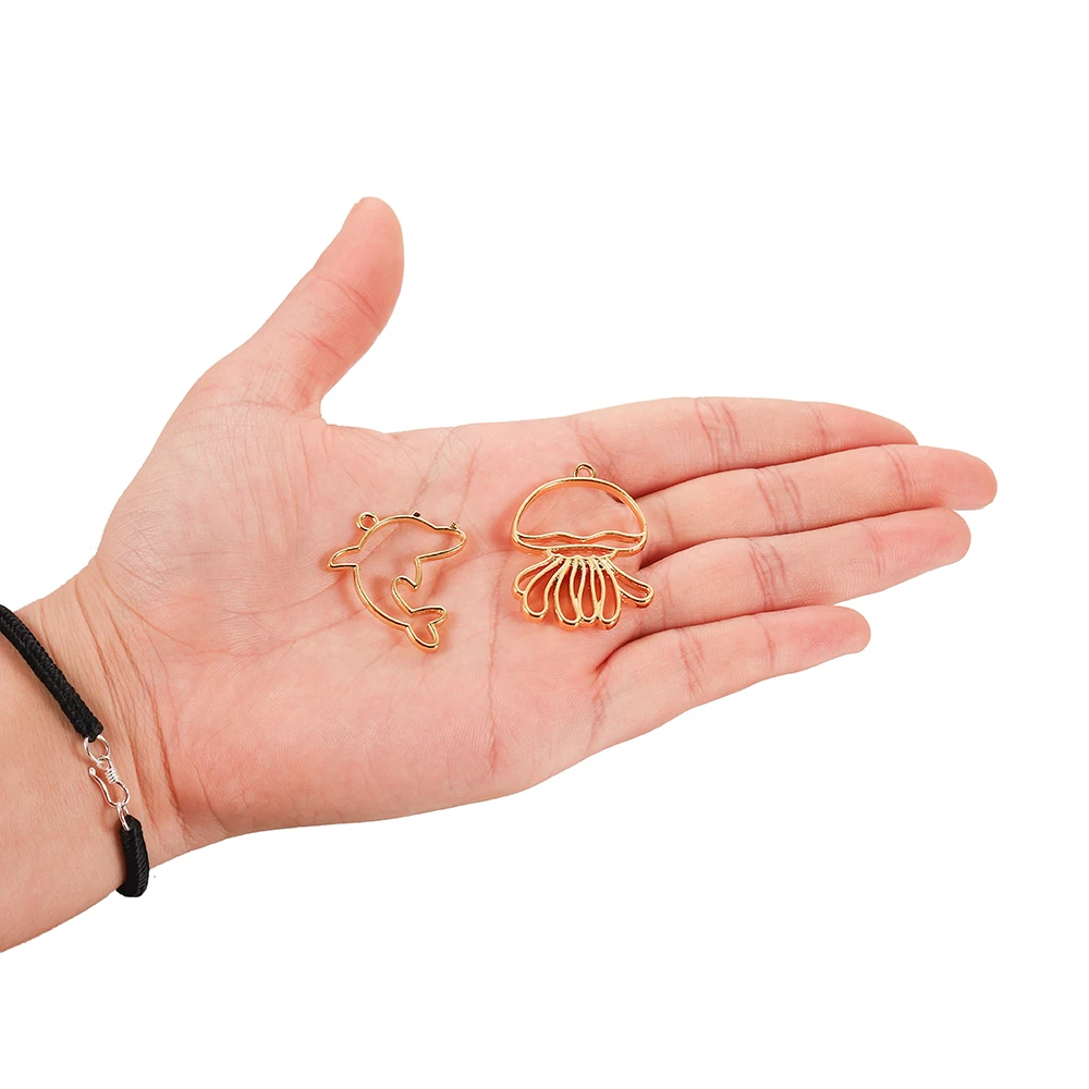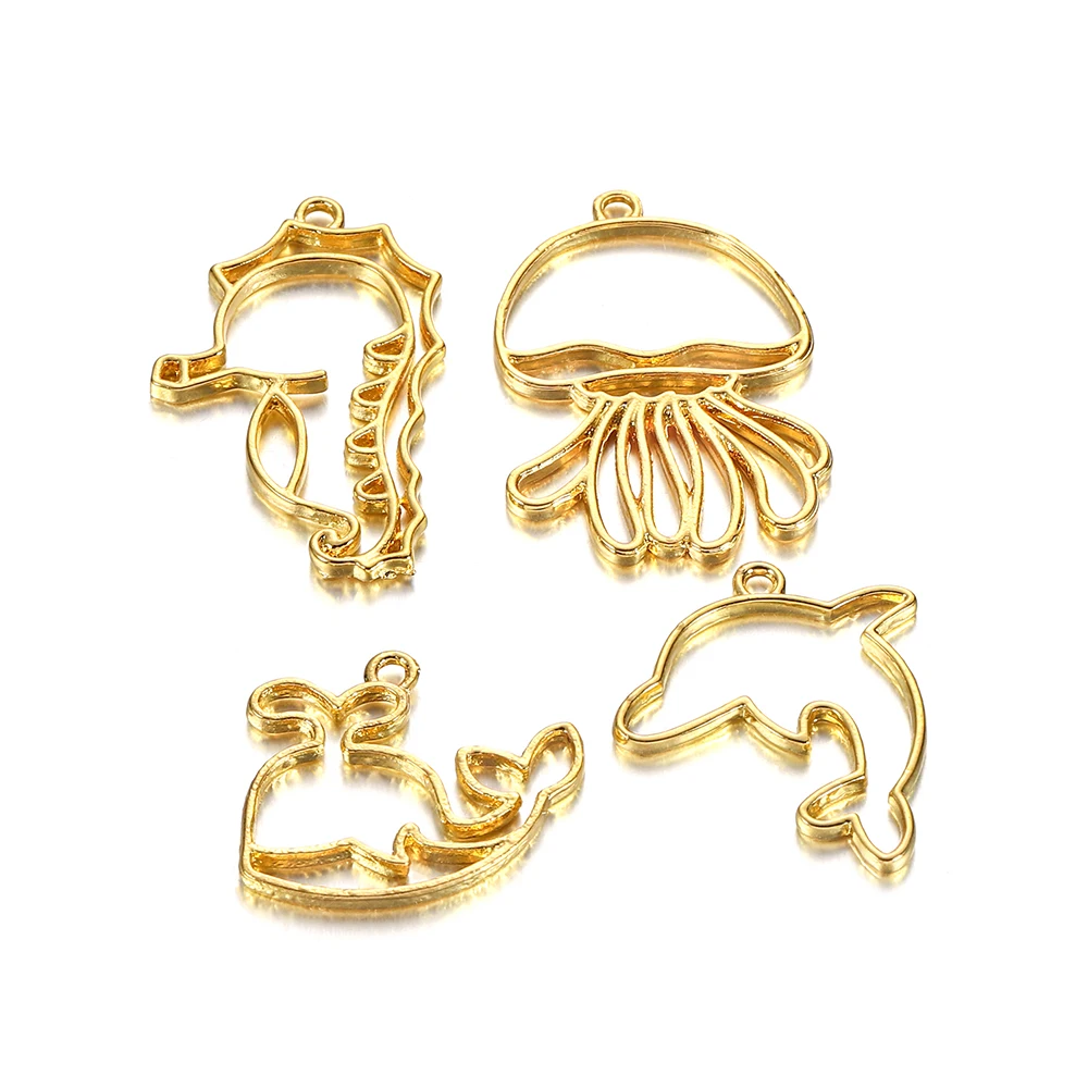 4 шт./компл./набор, золотые полые рамки в океанском стиле, подвеска для открытой оправы, УФ-формы из эпоксидной смолы, сделай сам, аксессуары для изготовления ювелирных изделий