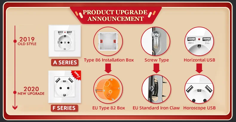 Розетка EU RU GR с двумя портами USBВходное напряжение: 110-250 В переменного токаВходная частота: 50 Гц/60 ГцUSB Выход: 5V 2100ma