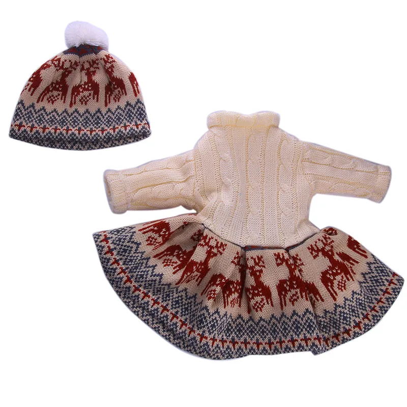 Зимний свитер шерстяная шапочка платье подходит 18 дюймов американс...