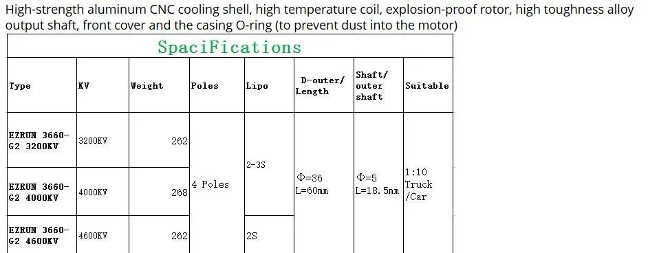 EZRUN 3660 G2 мотор 4600KV/4000KV/3200KV Мотор: