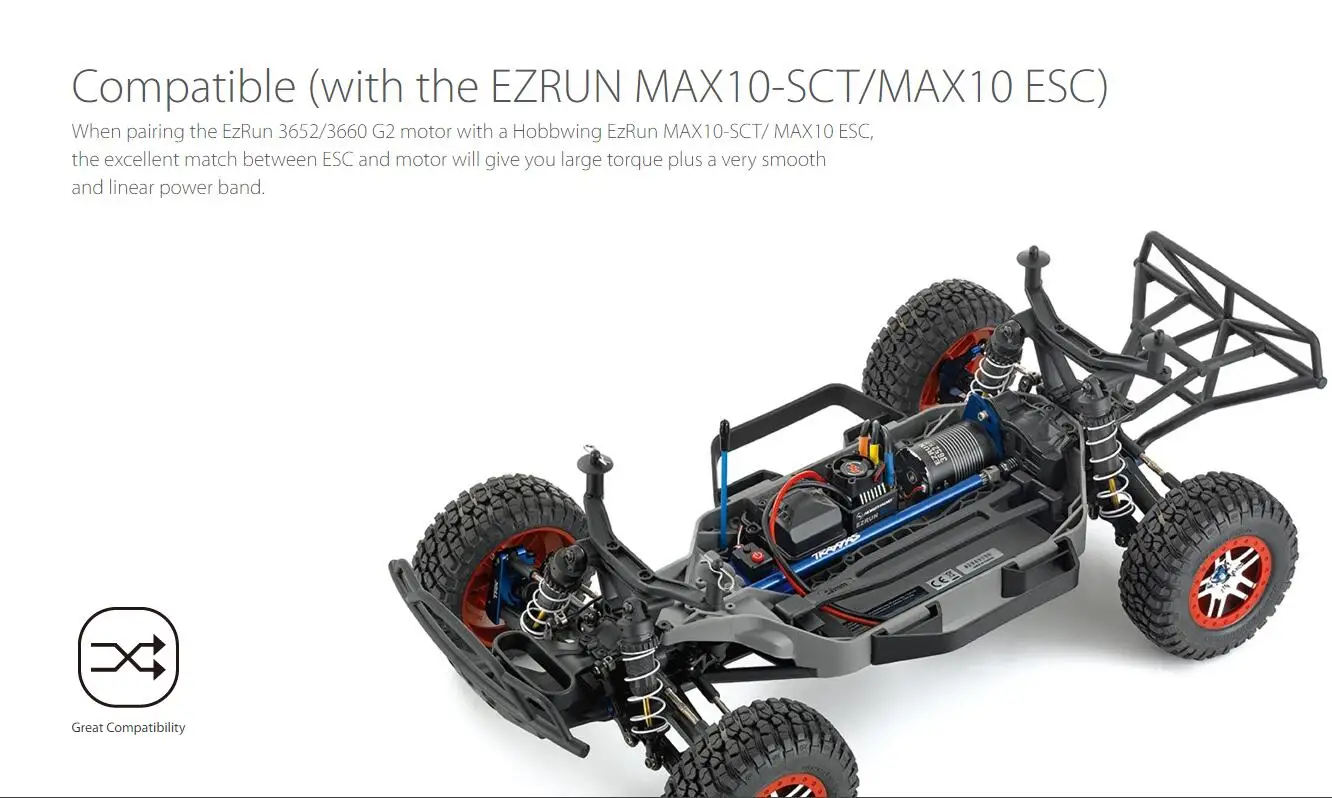 • Отличное соответствие между EZRUN 3652/3660 G2 с EZRUN MAX10/MAX10 SCT гарантирует пользователям большой крутящий момент плюс очень гладкий и линейный диапазон мощности.