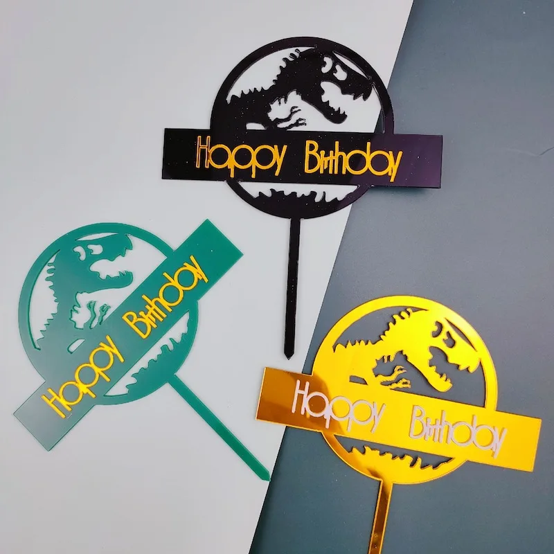Тематика динозавра, украшение для торта, акрил, золотой, с днем рож...