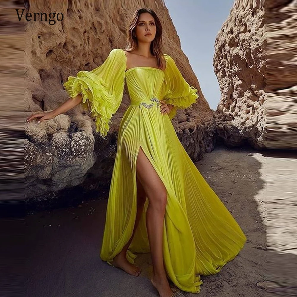 Женское шифоновое вечернее платье Verngo, ярко-желтое платье с длинными рукавами-фонариками, разрезами по бокам, Пляжное платье для выпускного вечера, 2021