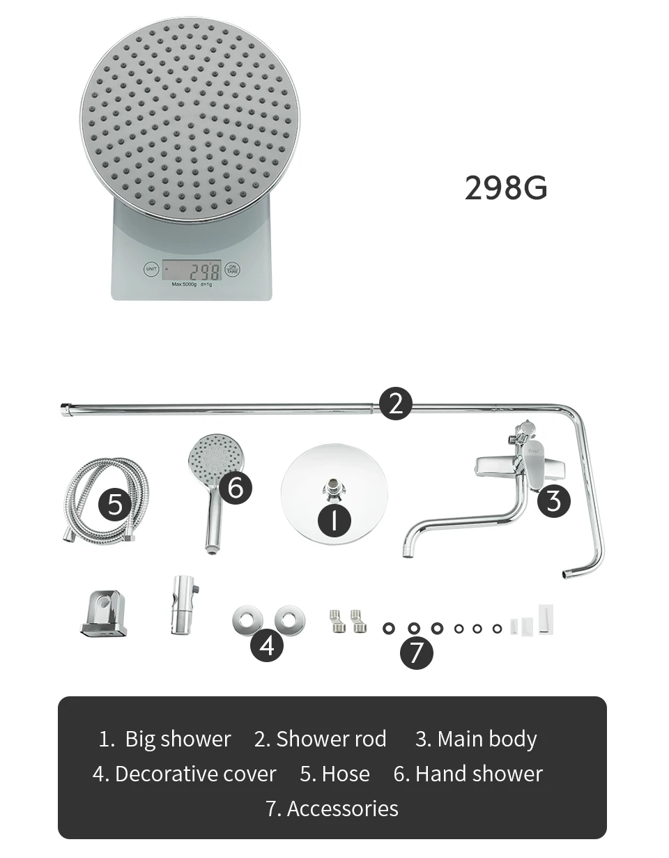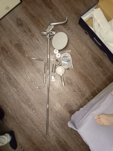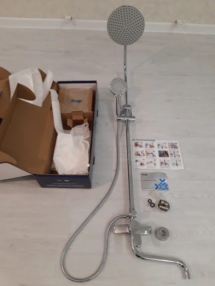 Прекрасный набор для ванной с душевой стойкой, европейские стандарты ISO, упаковано изумительно. Ещё не пользовались. Продавец общается по вопросам доставки оперативно. Рекомендую магазин - забота о клиентах.