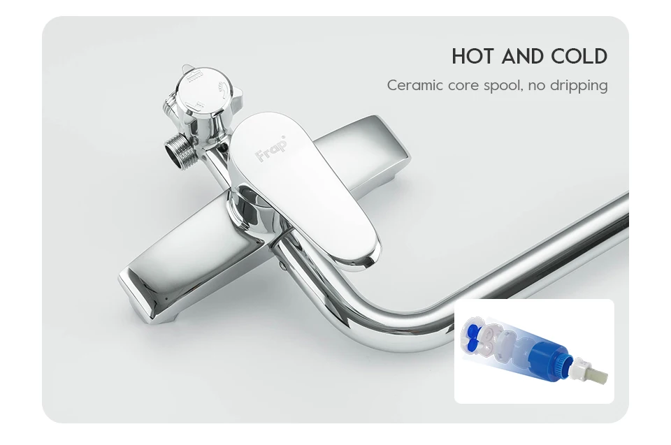 Смеситель для ванны и душа Frap, хромированный, с насадкой для душа