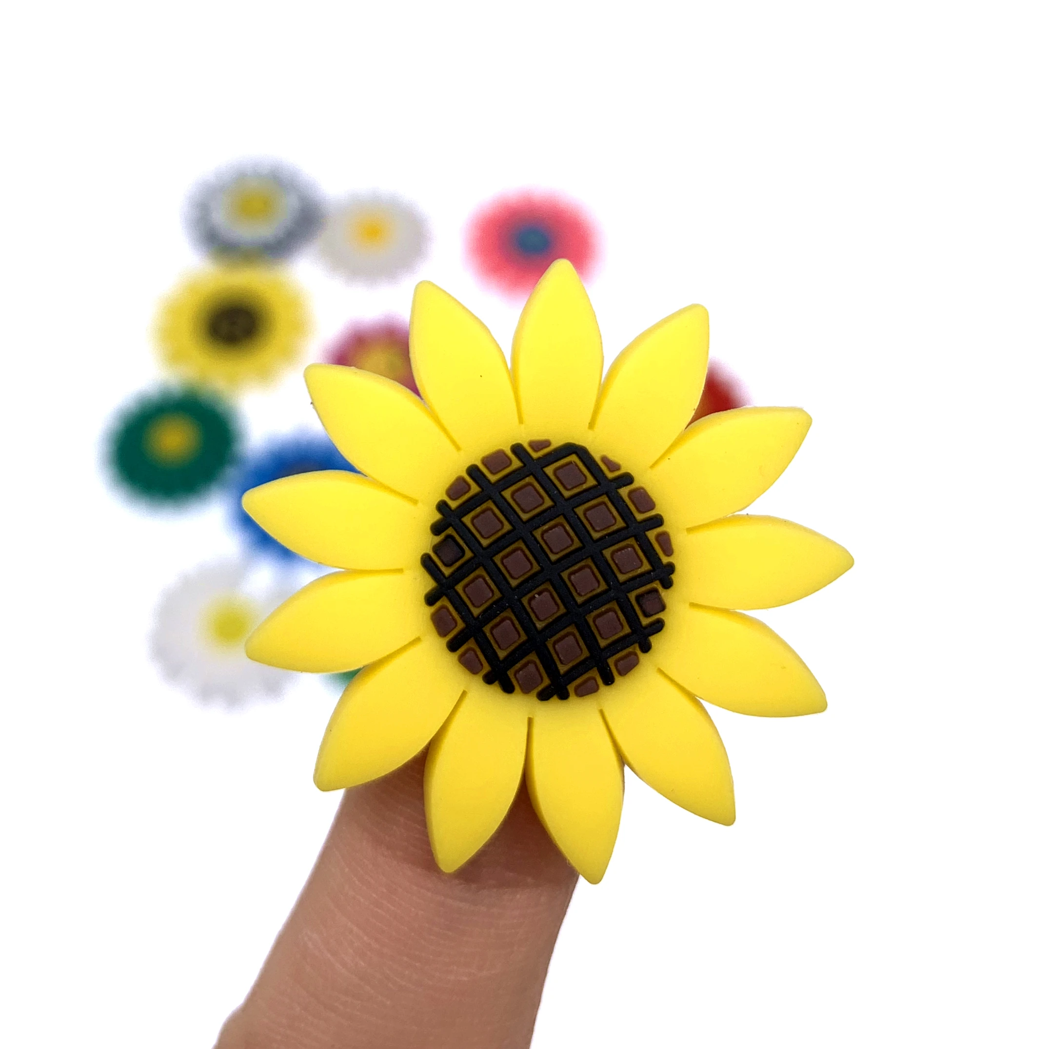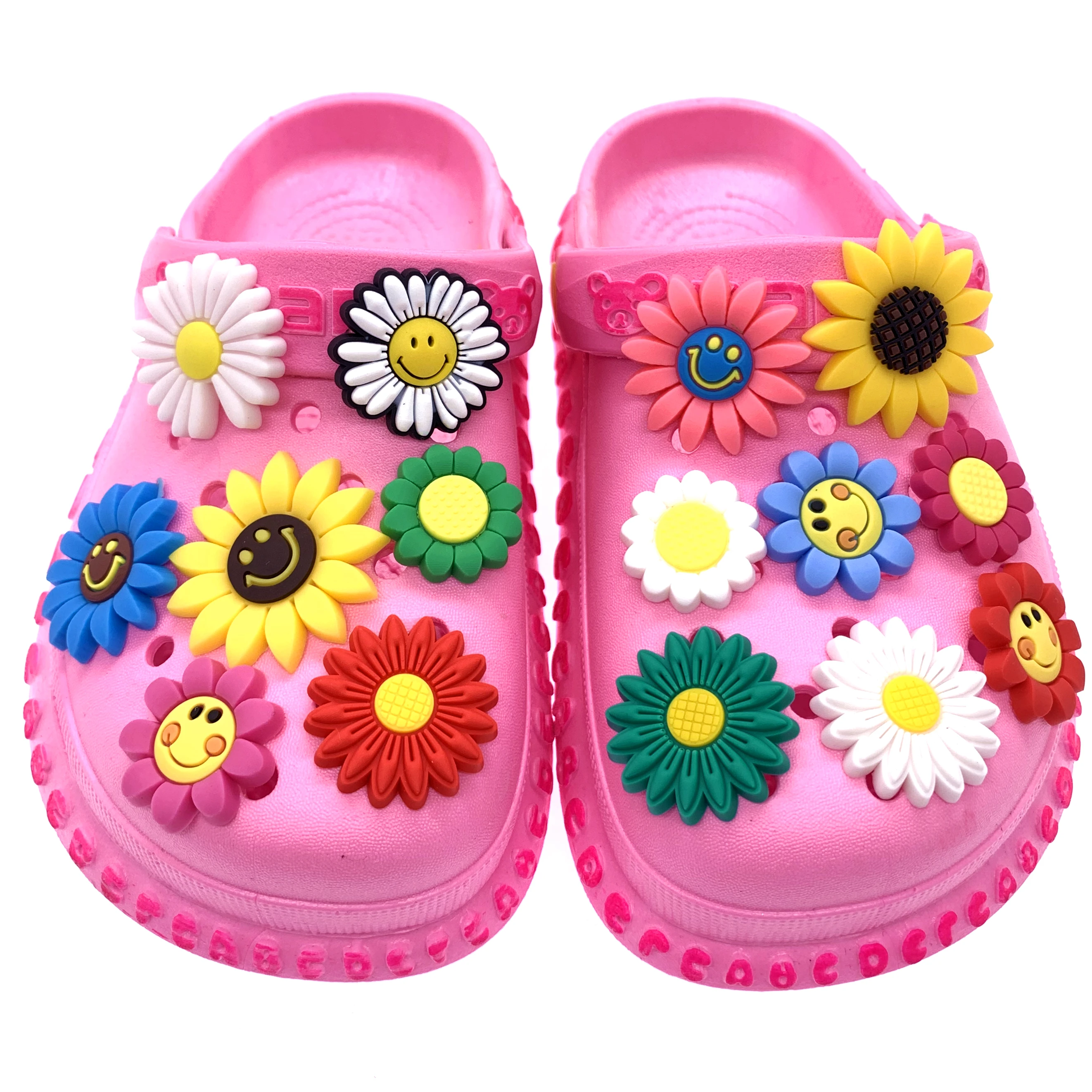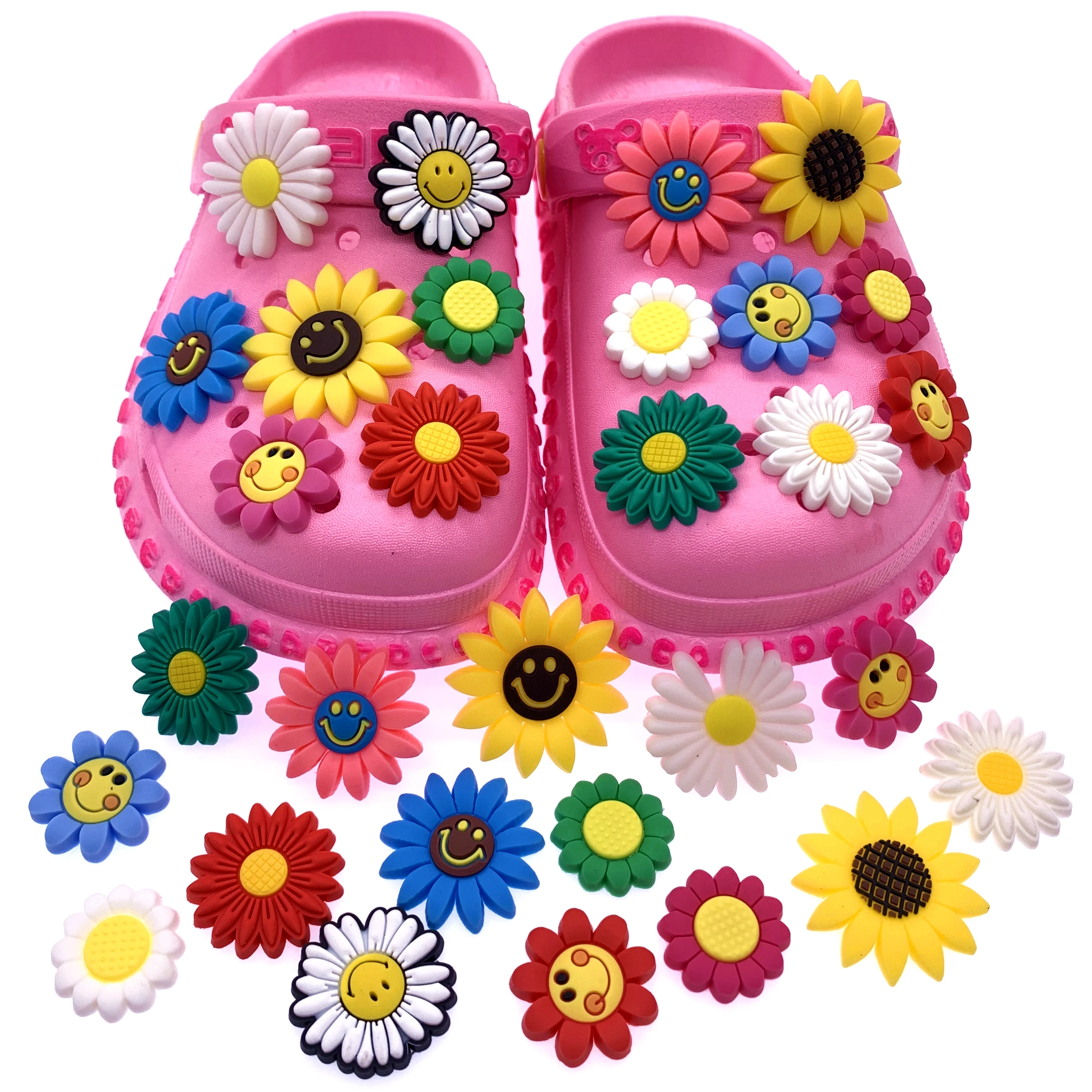 Оптовая продажа, 50 шт., смешанные подсолнухи для обуви, украшения растений сделай сам, Кроксы, садовая обувь, аксессуары для браслета, подарки для девочек