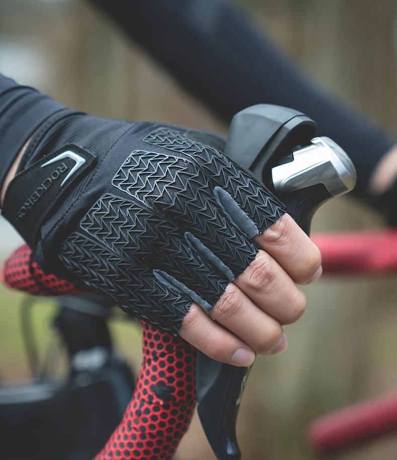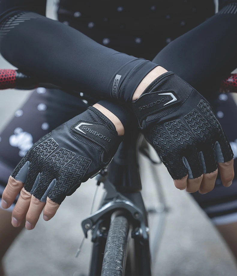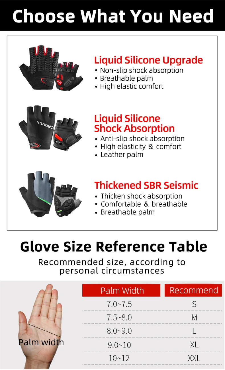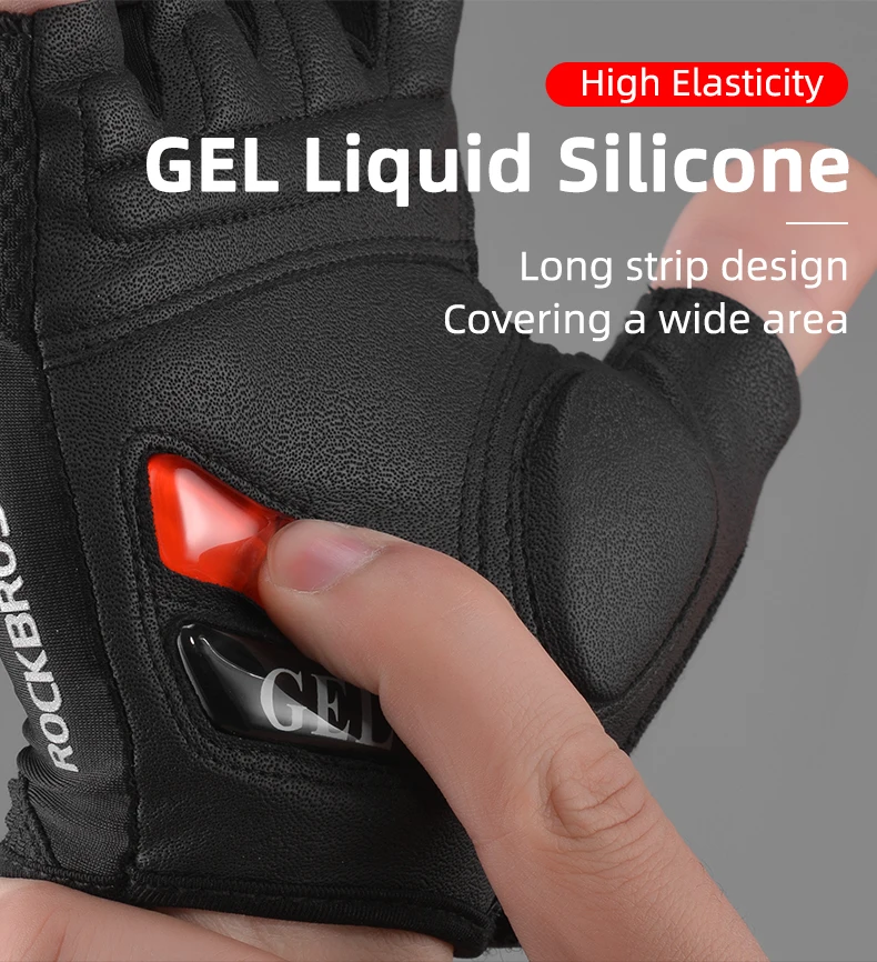 Дизайн сенсорного экрана для использования смартфона во время езды на велосипедеСиликоновый + SBR амортизирующая накладкаДышащая и удобная ткань из лайкрыМахровая ткань на больших пальцахРегулируемые ремни для лучшей посадки