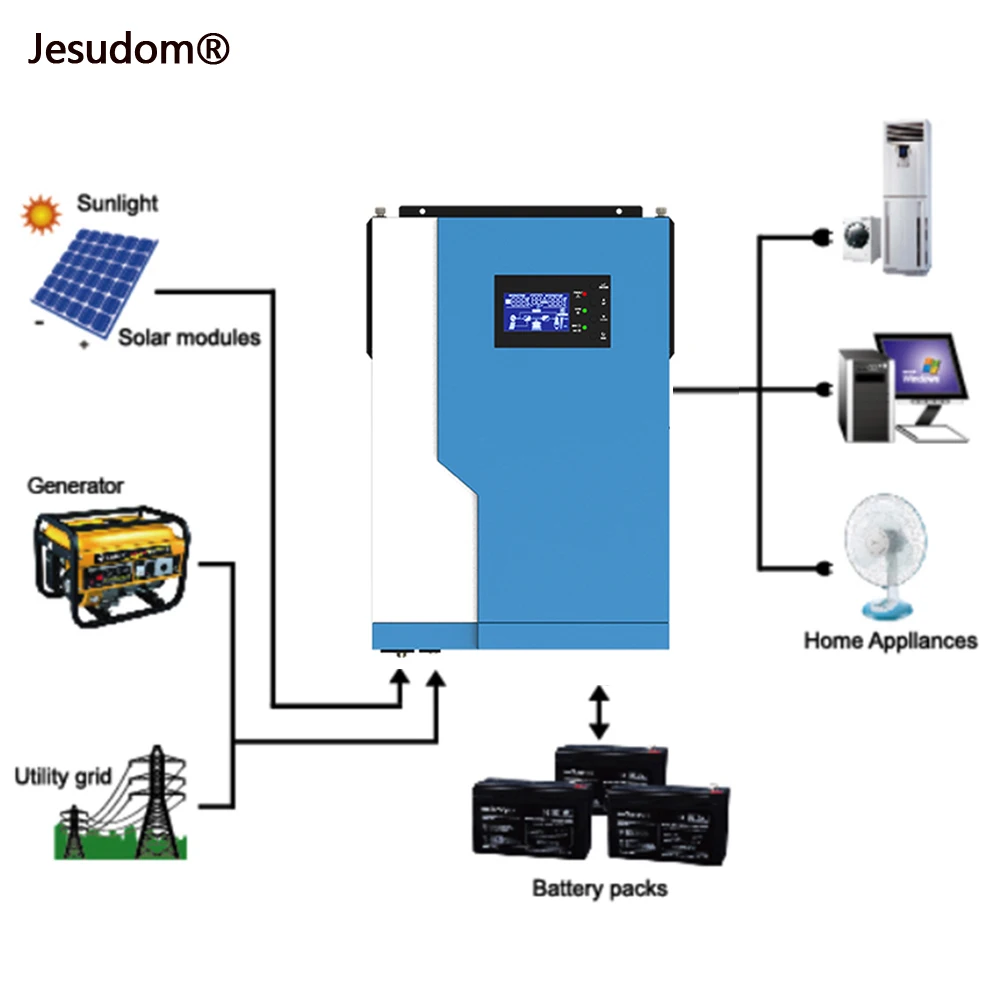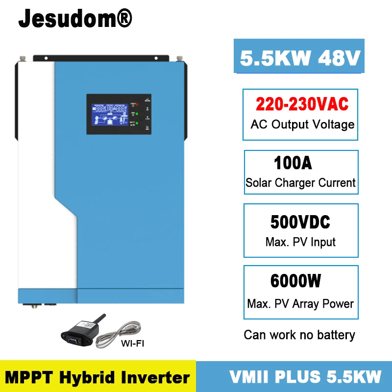 Гибридный солнечный инвертор, 5,5 кВт, 48 В постоянного тока до 220 В переменного тока, немодулированный синусоидальный сигнал, Контроллер Заряда MPPT для солнечной батареи с Wi-Fi, может работать без батареи