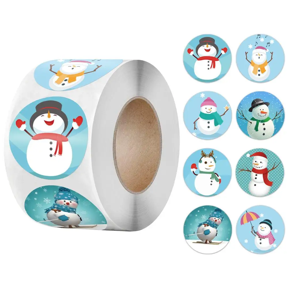50-500 шт Счастливого Рождества наклейки 1 дюймов Снеговик Рождество уплотнительные этикетки наклейки для вечерние DIY упаковки канцелярские наклейки