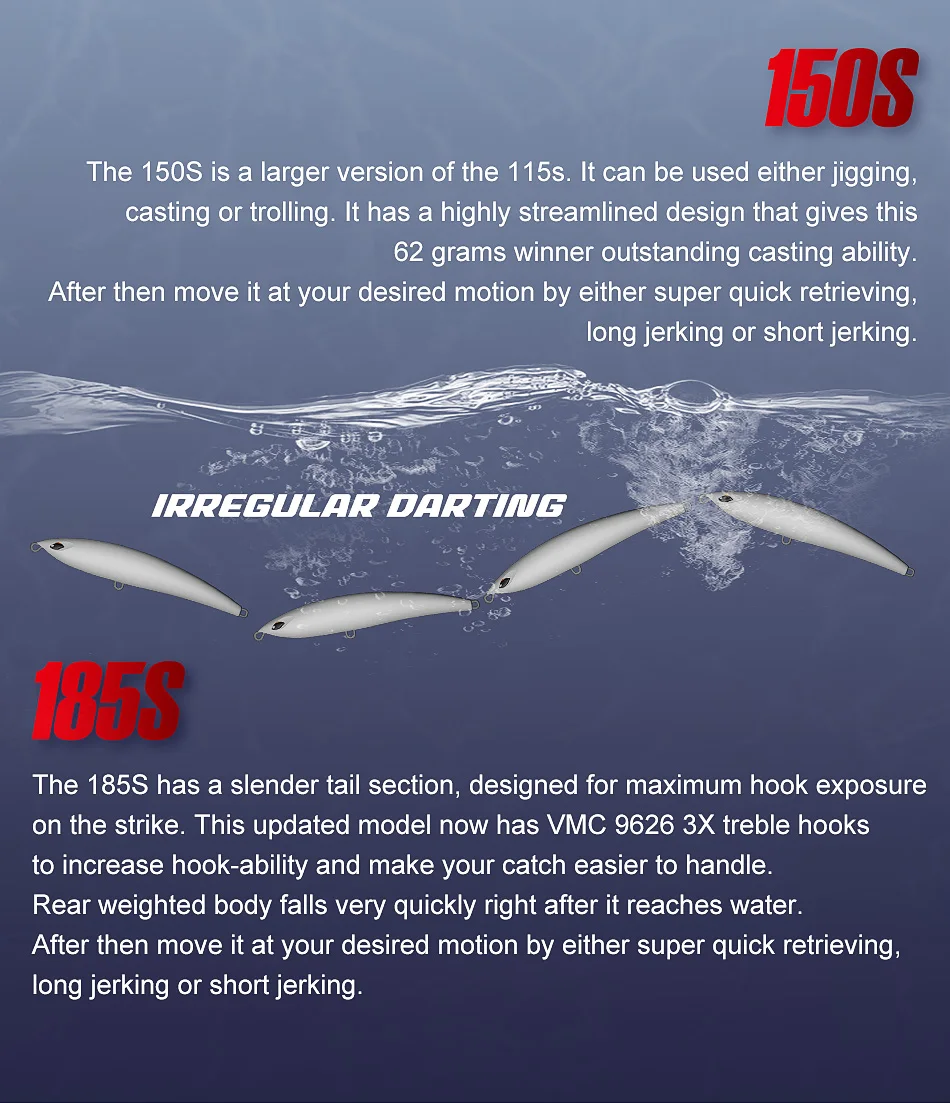 Тонущая рыболовная приманка-карандаш NOEBY, 115 мм, 54 г, 150 мм, 62 г, 185 мм, 126 г, длинное забрасывание, искусственные жесткие приманки для морской ловли окуня, рыболовные приманки