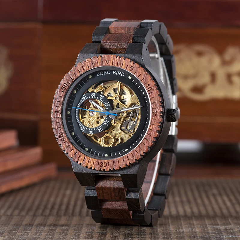 Часы мужские, механические, с автоподзаводом, в деревянном корпусе