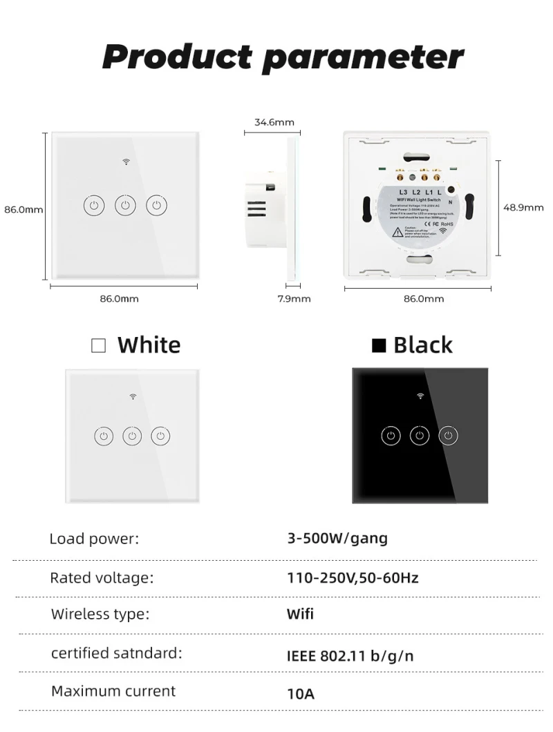 Стеклянный сенсорный экран этого Смарт-переключателя чувствителен к прикосновениям