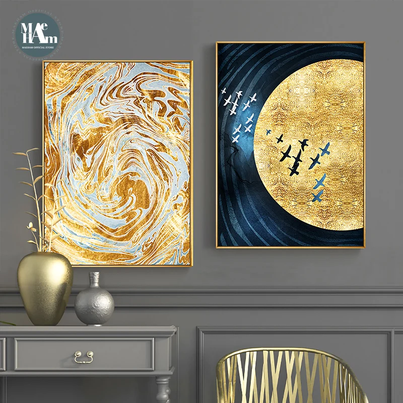 Скандинавские плакаты на холсте с изображением черного и золотого р...