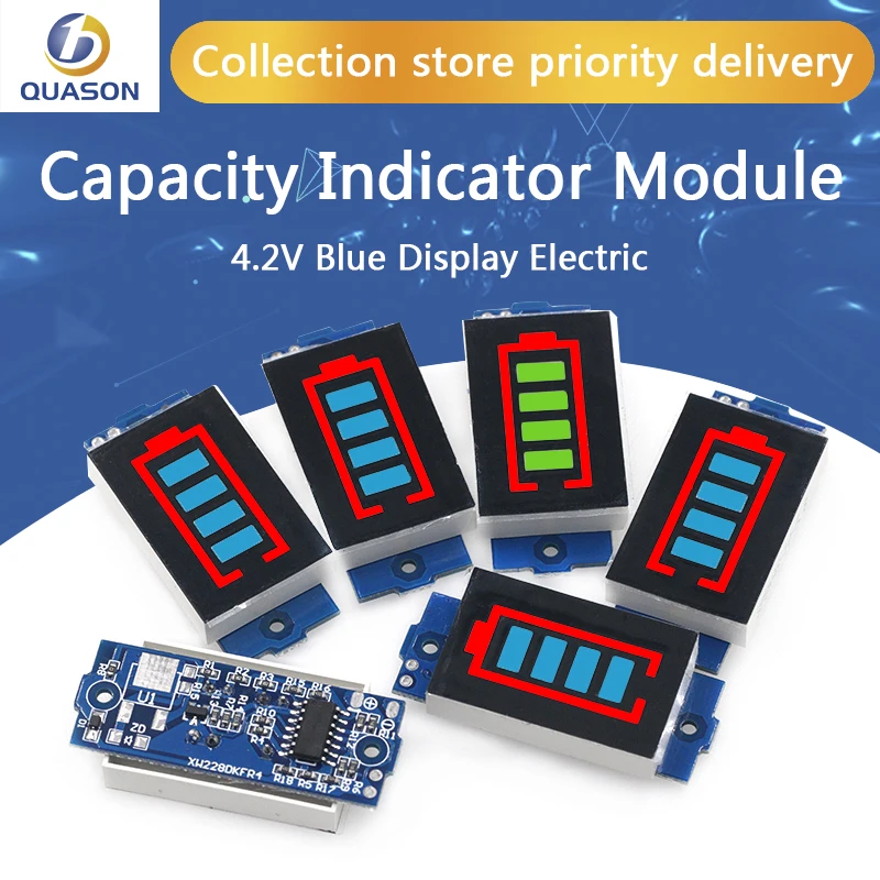 Индикатор емкости литиевых аккумуляторов 1S, 2S, 3S, 4S, 3,7 в, синий дисплей, тестер мощности литий-ионных аккумуляторов для электромобилей