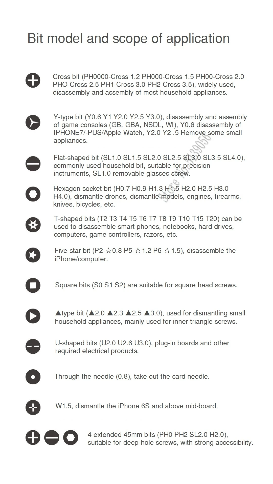 56 международных стандартных бит C4, все изготовлены из легированной инструментальной стали S2 Он специально сочетается с 4 широко используемыми удлиненными насадками 45 мм, чтобы сделать работу с глубокими отверстиями свободной от стресса.