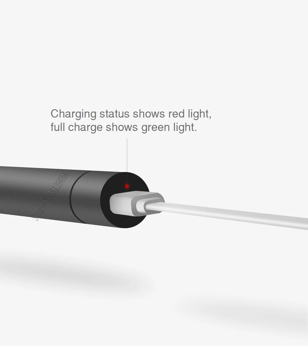 Совершенно новая литиевая батарея, большая выходная мощность 200 об/мин, тщательно настроенная литиевая батарея 1040 Использование MICRO USB 5 для прямой зарядки, устраняет громоздкое использование проводного подключаемого источника питания, улучшает работу рабочего стола и портативность. Заряжается за 40 минут, 2 часа непрерывного использования, 180 дней автономной работы Статус зарядки показывает красный светильник, полный заряд показывает зеленый светильник