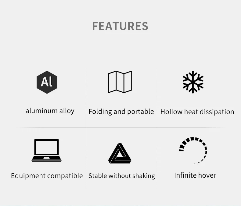 Особенности: специально обработанный материал из алюминиевого сплава, выглядит аккуратно и нежно, легко чистится, устойчив к ржавчине; Устойчив к царапинам, сплав теплопроводности и вентиляционная полая конструкция, работайте вместе, чтобы охладить компьютер и предотвратить перегрев. Уникальный дизайн паза для хранения в нижней панели делает место для хранения таких аксессуаров, как сотовый телефон, USB-накопитель, ручка IPAD, беспроводная мышь и т. д. или канцелярские принадлежности, такие как ручка, ластик, степлер и т. Д.