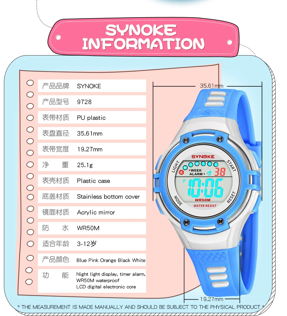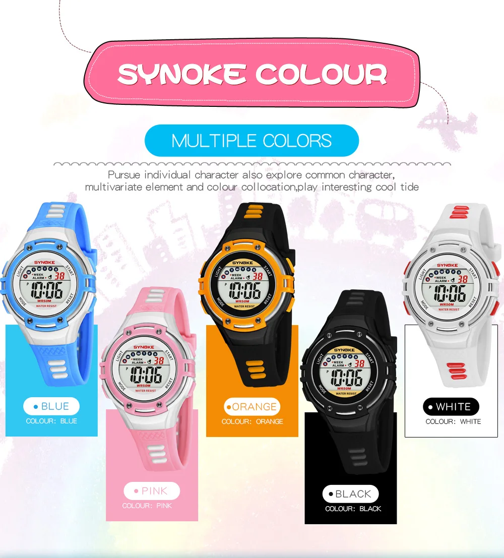 Часы SYNOKE Детские с хронографом, Водонепроницаемые многофункциональные светящиеся светодиодные, с будильником, цифровые