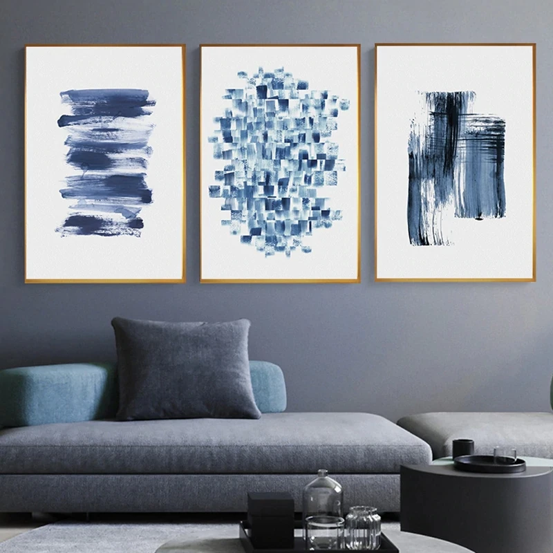 Минималистичные абстрактные темно-синие модульные картины в скандинавском стиле настенные художественные печатные холщовые постеры современное украшение для дома