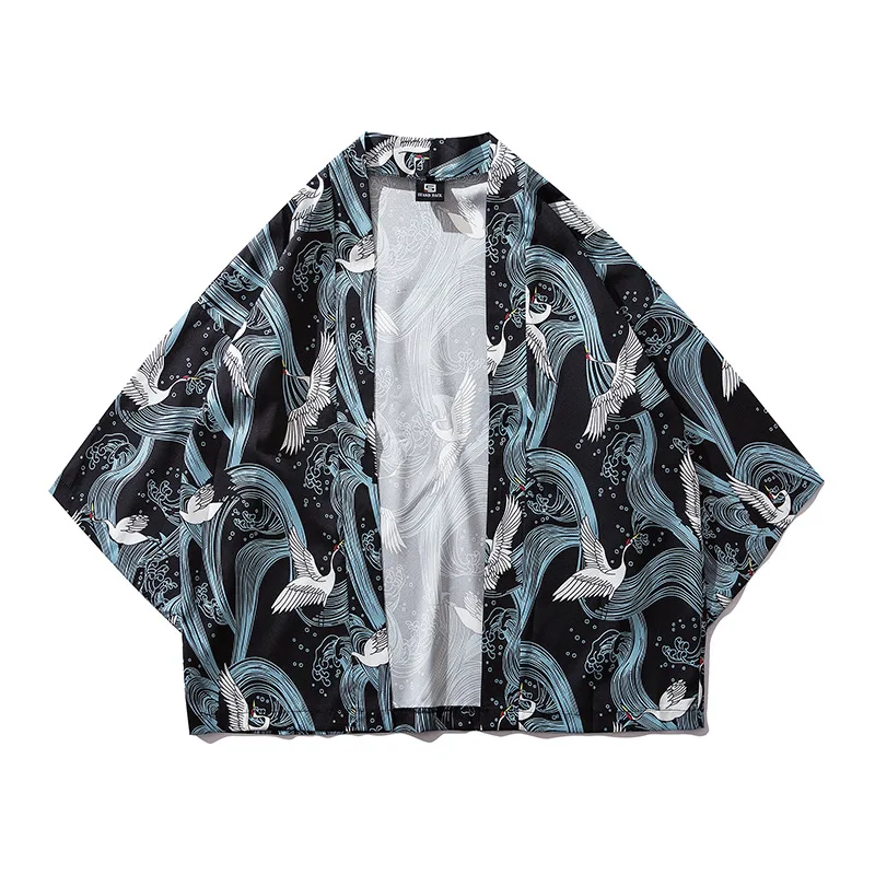 Традиционная одежда в японском стиле, кимоно с принтом журавлей, юк...
