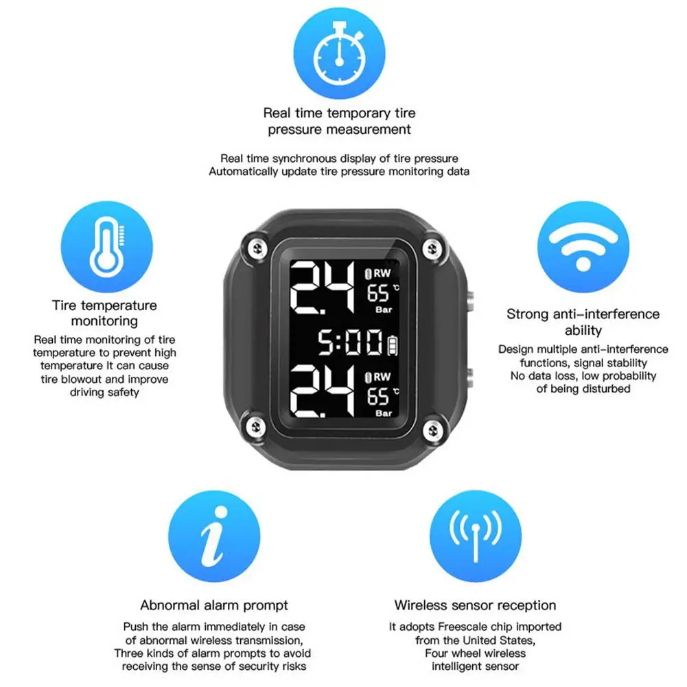 Система мониторинга давления в шинах для мотоцикла TPMS беспроводной монитор давления в шинах ЖК-дисплей в режиме реального времени система сигнализации в шинах