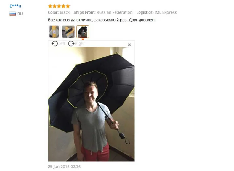 Супер быстрая доставка, красивый зонт, очень большой, как они мне нравятся, и в то же время его можно носить в сложенном виде, я люблю его, я рекомендую этого продавца без сомнения, я просто должен попробовать его с ветром