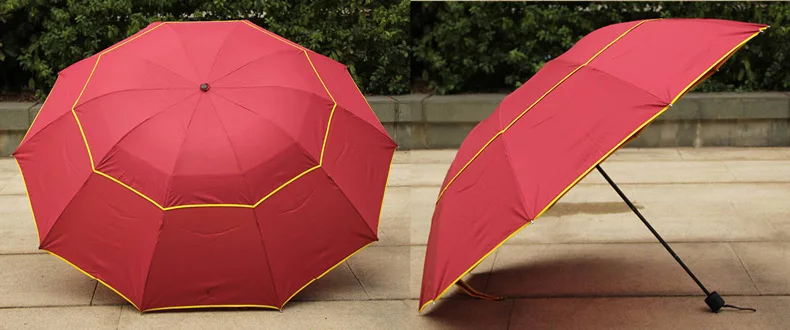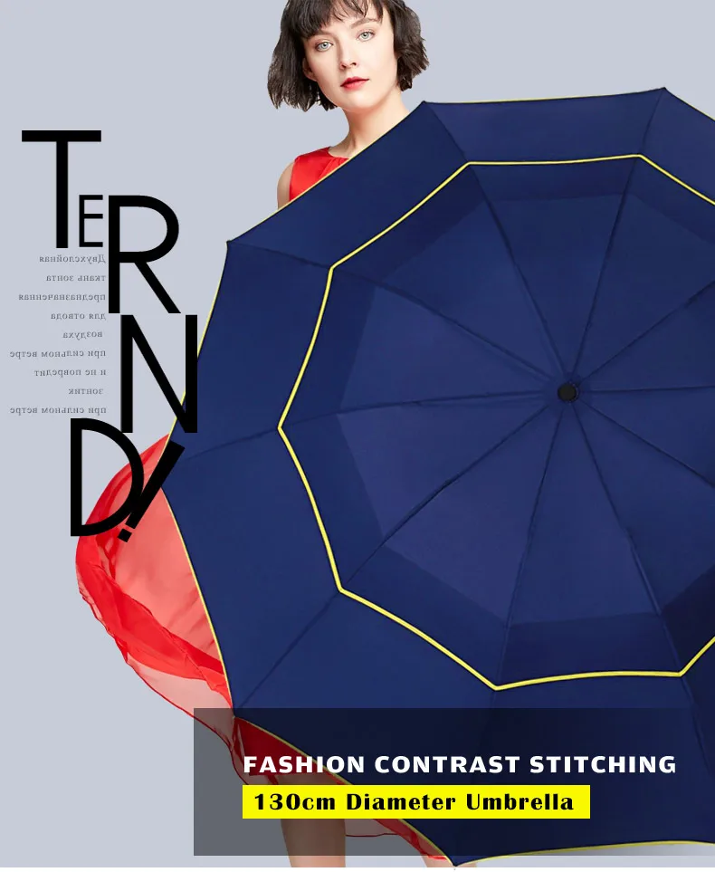 130 см Зонт от дождя для женщин и мужчин, 3 складывающиеся портативные двухслойные уличные большие зонты, прочные ветрозащитные деловые зонты для мужчин