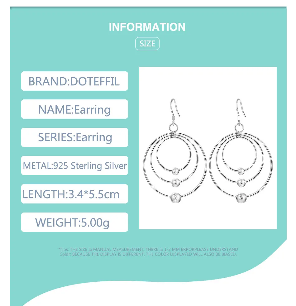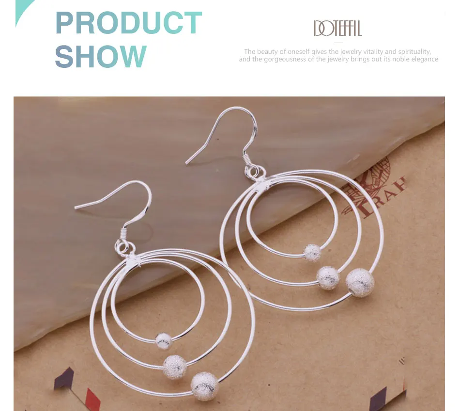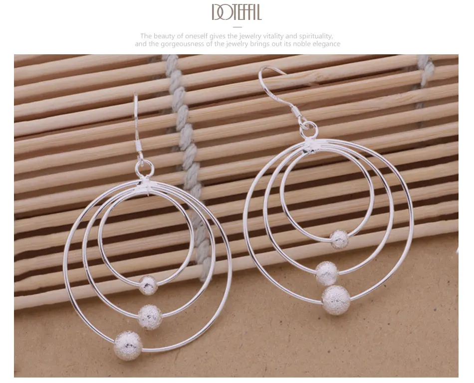 Серьги-кольца DOTEFFIL из стерлингового серебра 925 пробы с тремя круглыми матовыми бусинами, очаровательные женские ювелирные украшения, хороший подарок на свадьбу и вечеринку