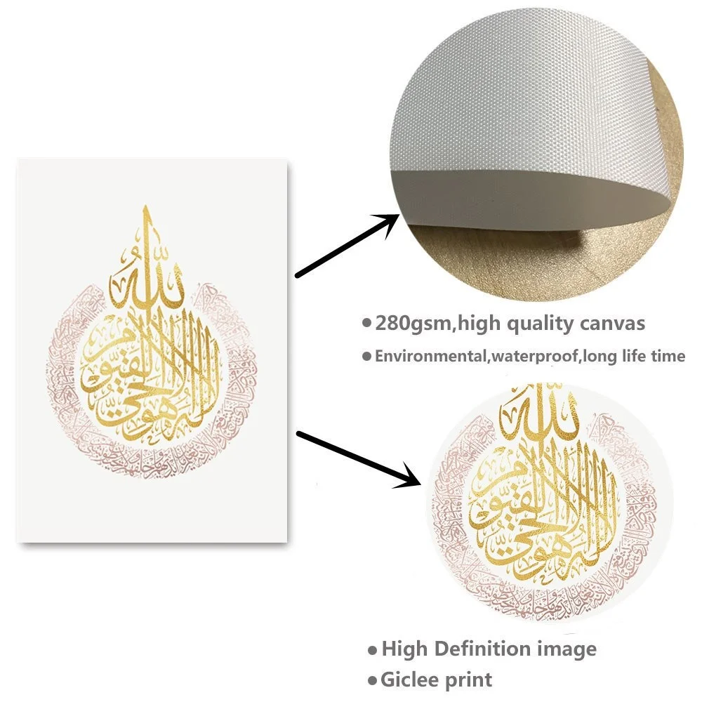 Постер каллиграфия Золотая мечеть Рамадан, настенная живопись на холсте, симпатичная декоративная картина для домашнего декора комнаты, Аллах мусульманство ислам